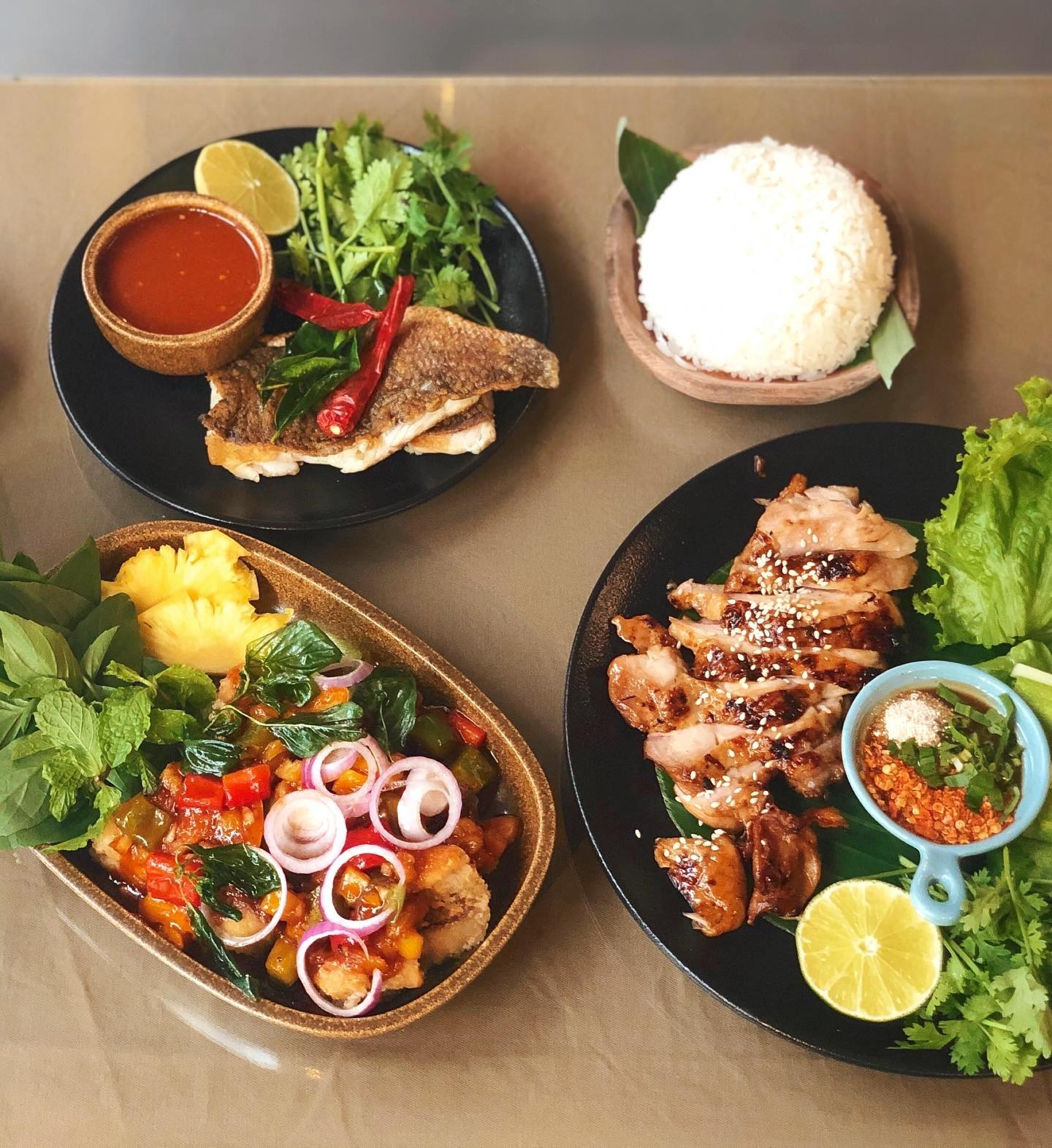 - Món nổi bật khác: pad Thái, ba rọi chiên giòn sốt Thái, trứng lòng đào sốt me, mực chiên lá chanh, gỏi xoài cá trê...
