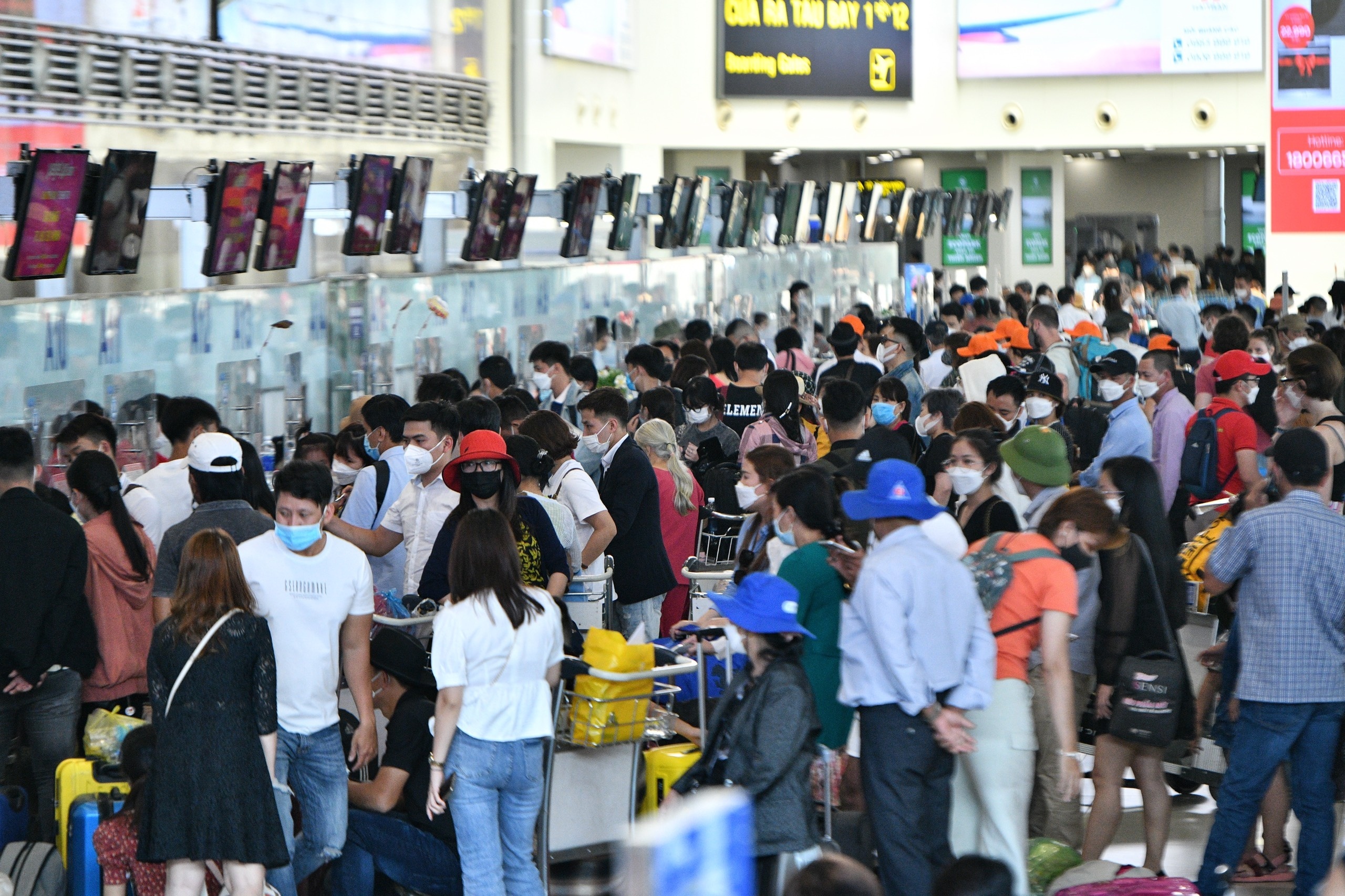 Số lượng hành khách đến sân bay Nội Bài (Hà Nội) cũng tăng hơn 40% so với cao điểm hè 2019, vượt quá công suất thiết kế của nhà ga hành khách T1.