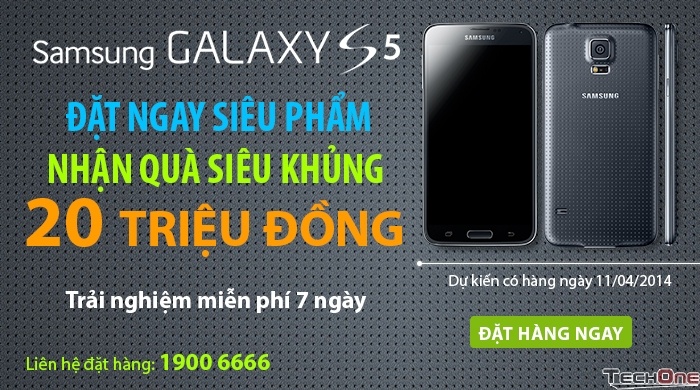 | Galaxy S5 chính hãng dự kiến 11/4 có hàng tại TechOne. |
