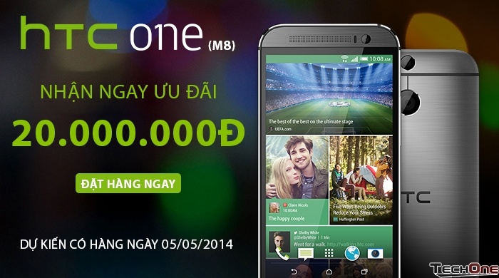 | HTC One M8 chính hãng dự kiến 5/5 có hàng tại TechOne. |