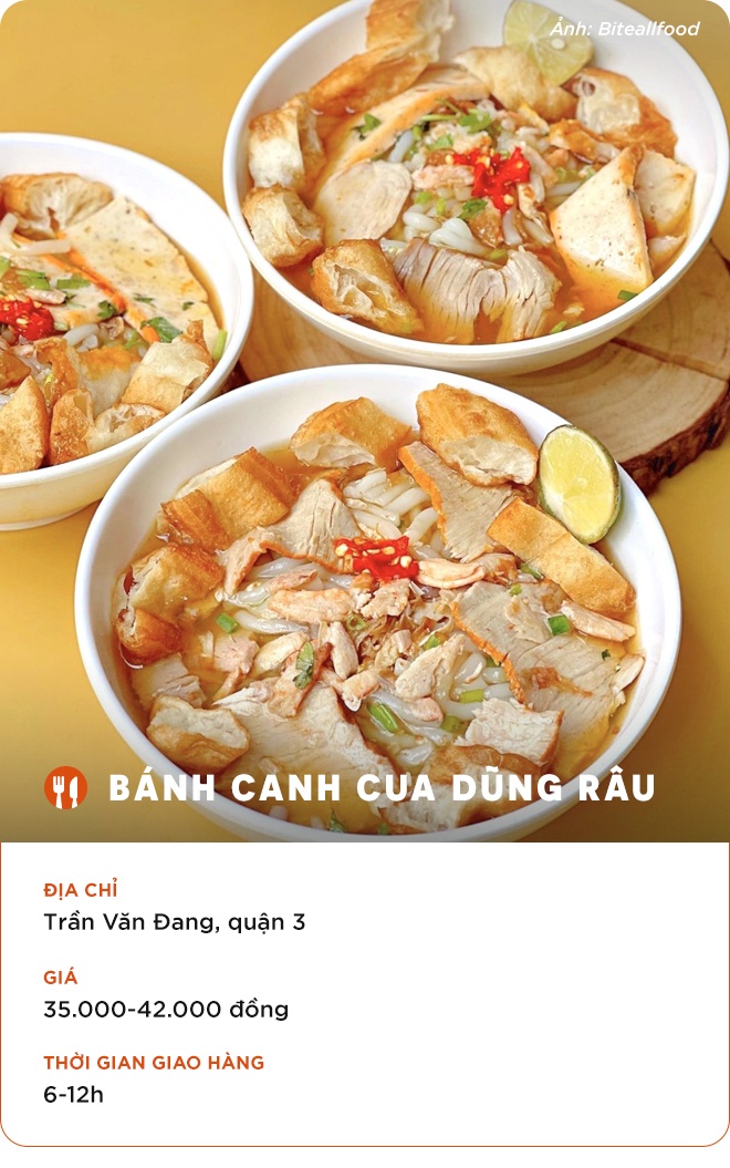 Biteallfood: "Mình ăn ở đây khá nhiều lần và hương vị ổn định. Nước lèo đặc sánh, kẹo kẹo, vị thanh, nêm gia vị vừa miệng. Sợi bánh canh mềm dai, thịt cua tươi, không bị bở như kiểu đông lạnh. Mức giá tương xứng với chất lượng".
