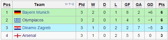 "Pháo thủ" có 3 điểm đầu tiên ở bảng F Champions League mùa này sau khi đánh bại Bayern 2-0. Giroud là cầu thủ mở tỷ số, còn Oezil ghi bàn ấn định chiến thắng cho Arsenal.