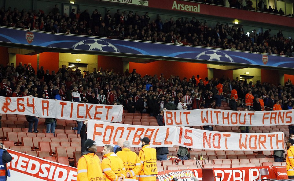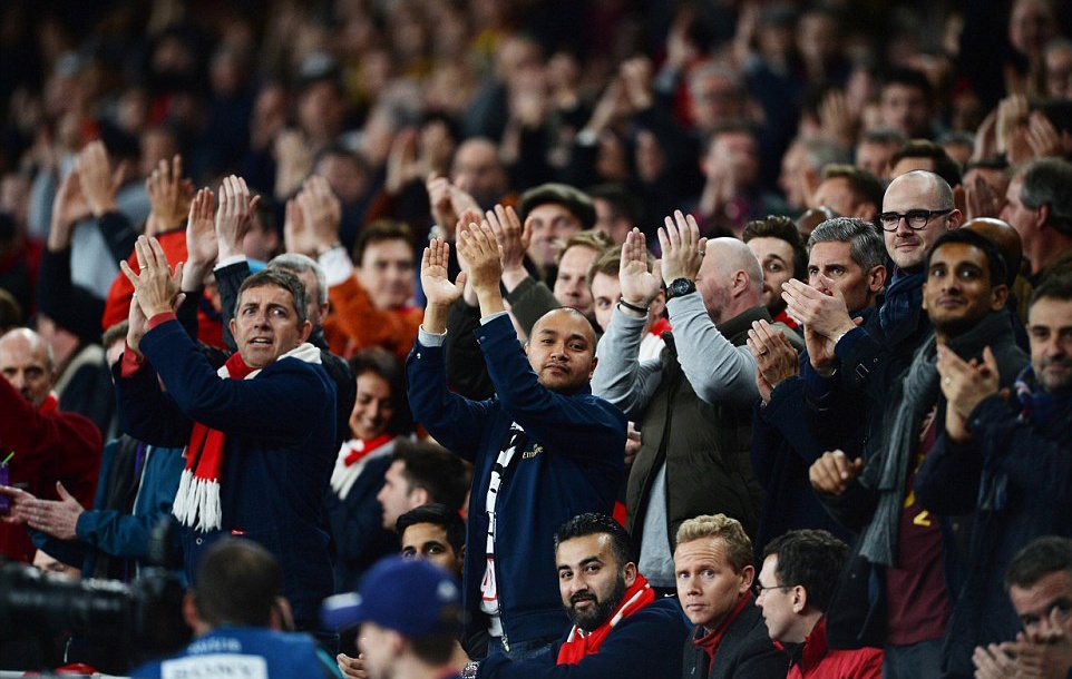 Do phản đối giá vé quá cao (64 bảng) tại sân Emirates, các fan Bayern quyết định rời khán đài trong 5 phút đầu trận.
