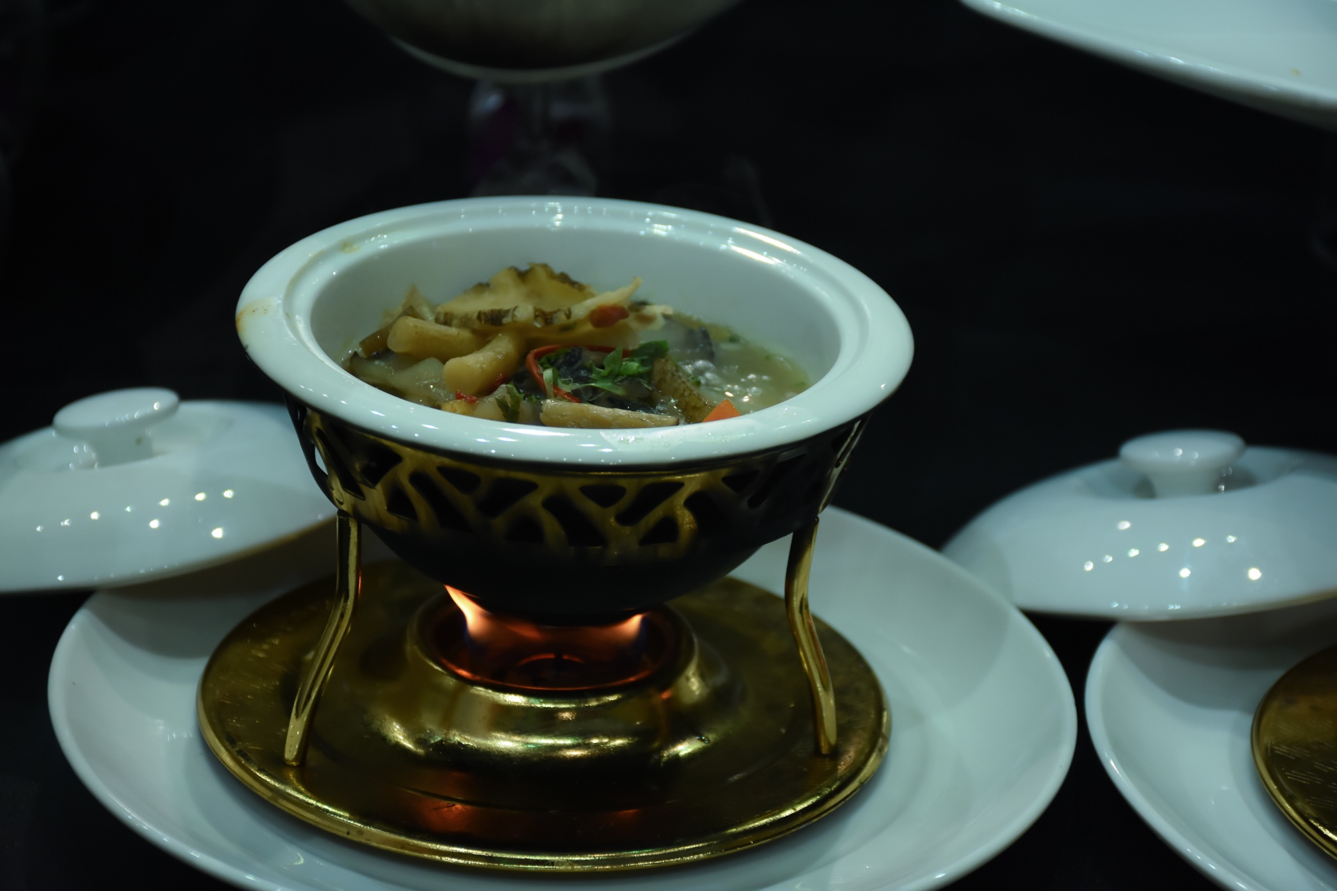 | Đội thi Khách sạn Cẩm Thành (Quảng Ngãi) thông minh khi có thêm bếp cồn giữ nhiệt cho món ăn “gà ác hầm hải sâm ăn kèm bánh mì”. Dù lần đầu tiên đến với chương trình, tay nghề khéo léo của các đầu bếp đã thực sự chinh phục những nghệ nhân ẩm thực khó tính.
