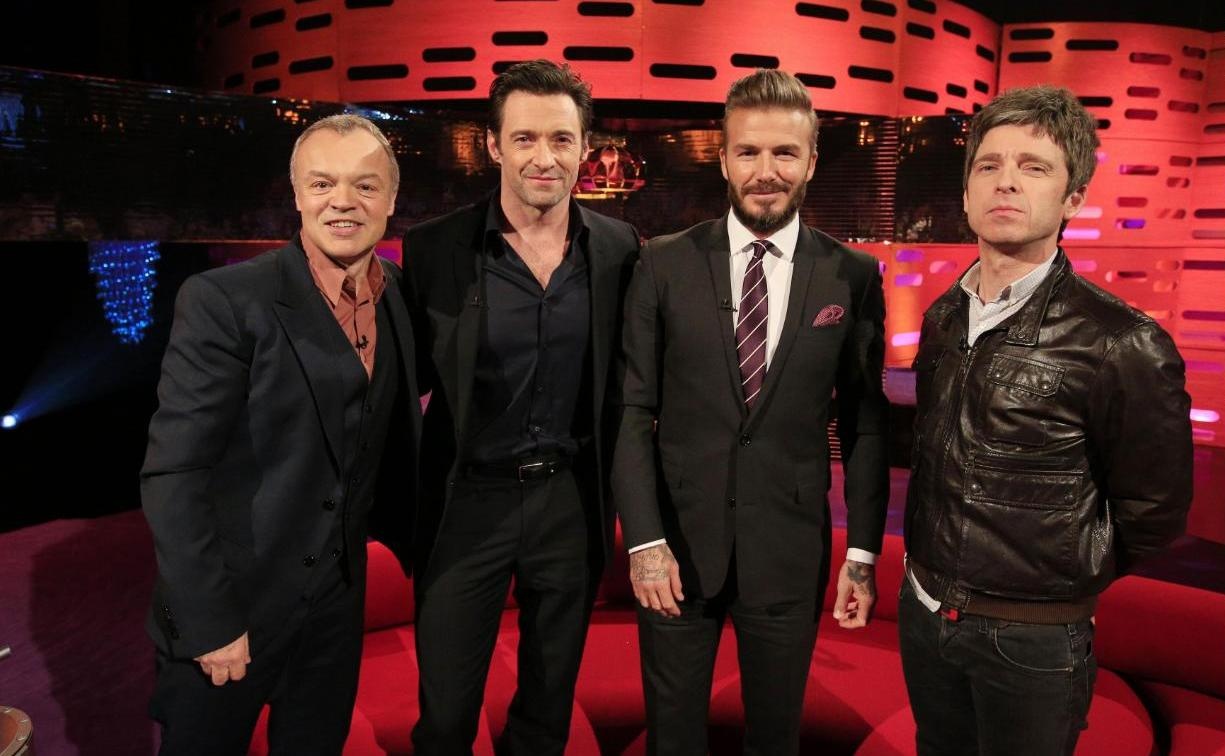 | Ba khách mời trong chương trình số mới nhất của Graham Norton là Hugh Jackman, David Beckham và rocker Noel Gallagher. |