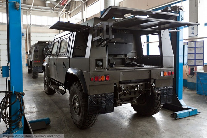 | Xe Iveco Lynx lắp ráp ở nhà máy Kamaz được thiết kế thực hiện nhiệm vụ cho nhiều lực lượng khác nhau, có cấu trúc mạnh mẽ và khả năng mang các loại vũ khí hạng nhẹ, thiết bị thông tin liên lạc và các thiết bị quân sự khác. |