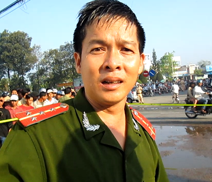 Là người đầu tiên đến hiện trường, đại uý Nguyễn Phong Lưu - Phó trưởng Công an phường Châu Văn Liêm - cho biết khi nhận được tin báo, anh lập tức cùng 2 đồng đội đến hiện trường. Lúc này Phúc đã ở trên tầng thượng, không cho ai tiếp cận.