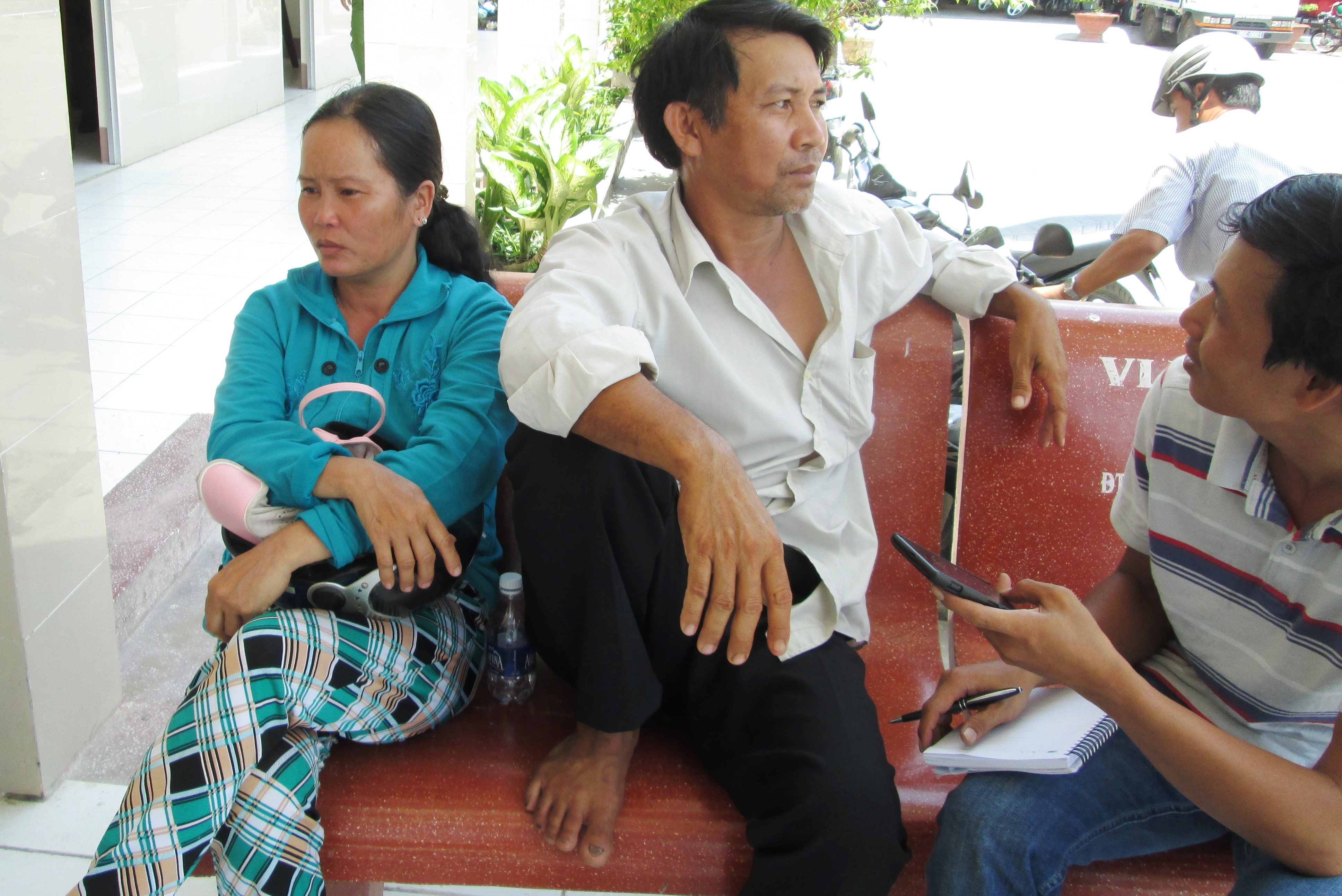| Cha mẹ Phúc tại trụ sở Công an quận Ô Môn. |