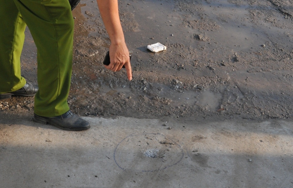 | Viên đạn làm thủng nền bê tông sân nhà nghỉ. |