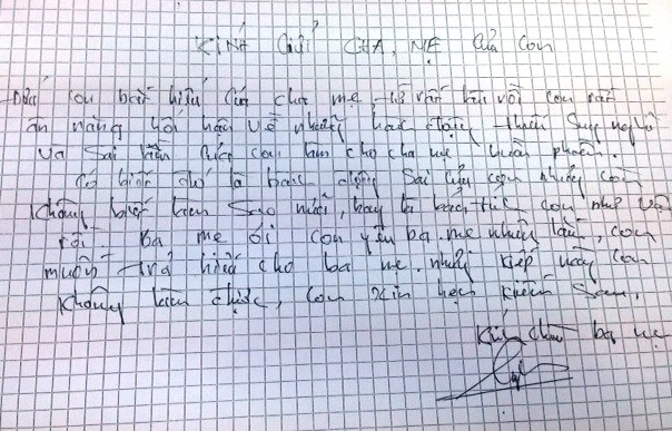 | Bức thư tuyệt mệnh Phúc gởi cho cha mẹ. |