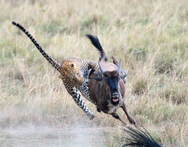 | Báo lao tới vồ dê con khiến nó hốt hoảng bỏ chạy. Ảnh: Martin Farrell. |