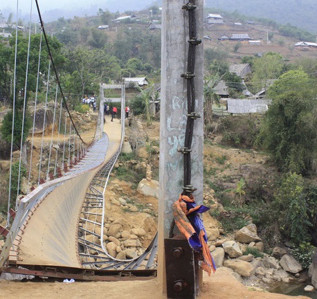 “Cầu Chu Va 6 dài 54m, rộng 1,5m. Cáp neo xuất xứ Hàn Quốc có khả năng chịu lực 72,4 tấn. Khả năng chịu lực của cáp neo gấp 4,43 lần khả năng tính toán, ắc neo chịu lực gấp 6 lần, bộ phận nhỏ nhất của bộ phận neo có khả năng chịu khoảng 120 tấn, gấp 3,67 lần so bình thường. Vì vậy ngay cả đoàn người đi chiếm 1/2 cũng không thể gây lật được”, ông Hà khẳng định.