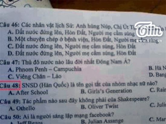 Đề thi có sự xuất hiện của SNSD