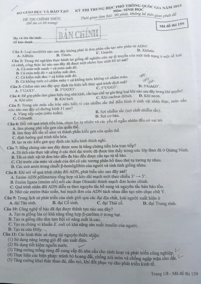 Chiều nay 4/7, các thi sinh đã thi xong môn Sinh học. Zing.vn xin giới thiệu bài giải gợi ý môn thi này.