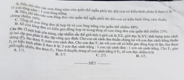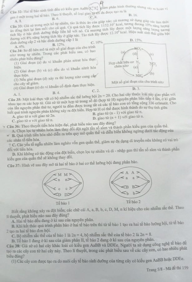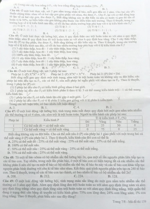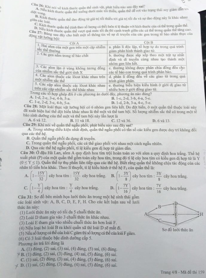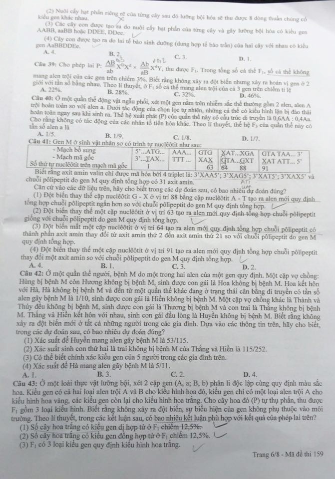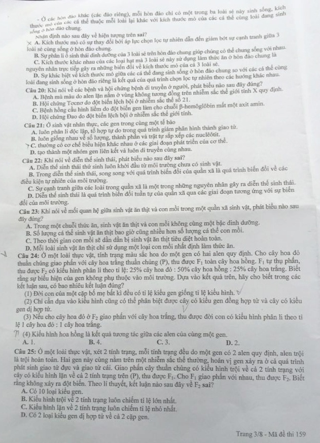 GỢI Ý GIẢI MÔN SINH HỌC: