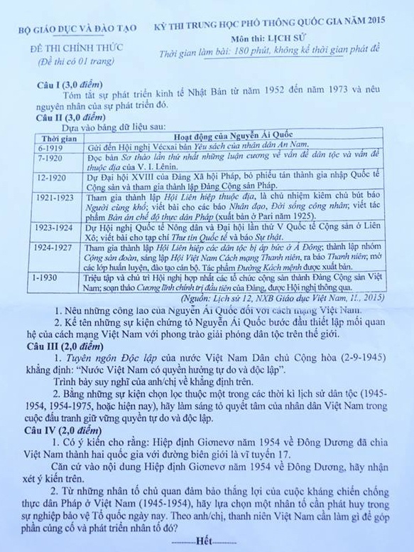 1. Suy nghĩ của anh/chị về khẳng định “Nước Việt Nam có quyền hưởng tự do và độc lập”. Học sinh cần nêu được các ý sau.