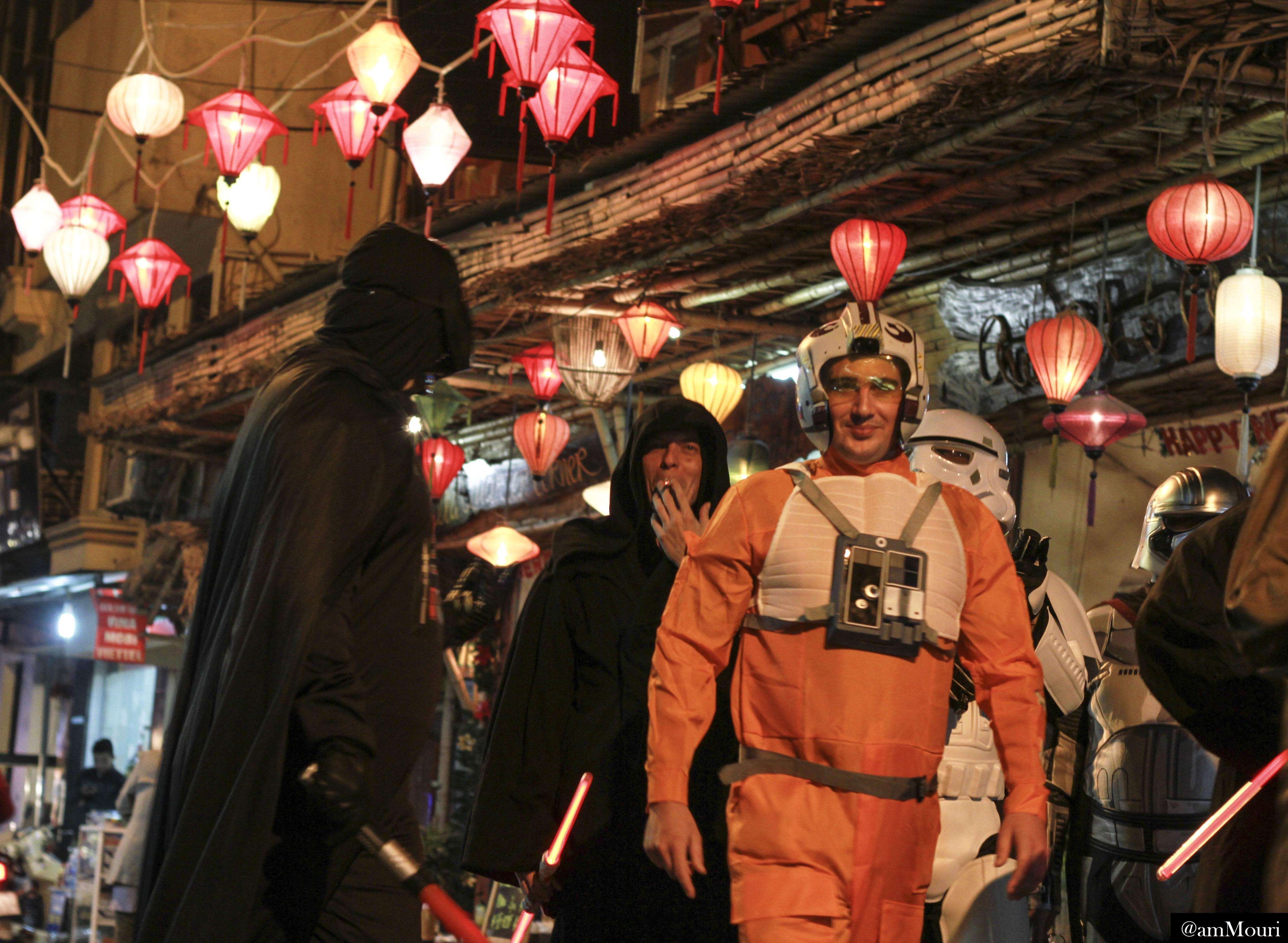 Nhiều du khách nước ngoài mặc trang phục như phim "Chiến tranh giữa các vì sao" đi khắp các con phố.