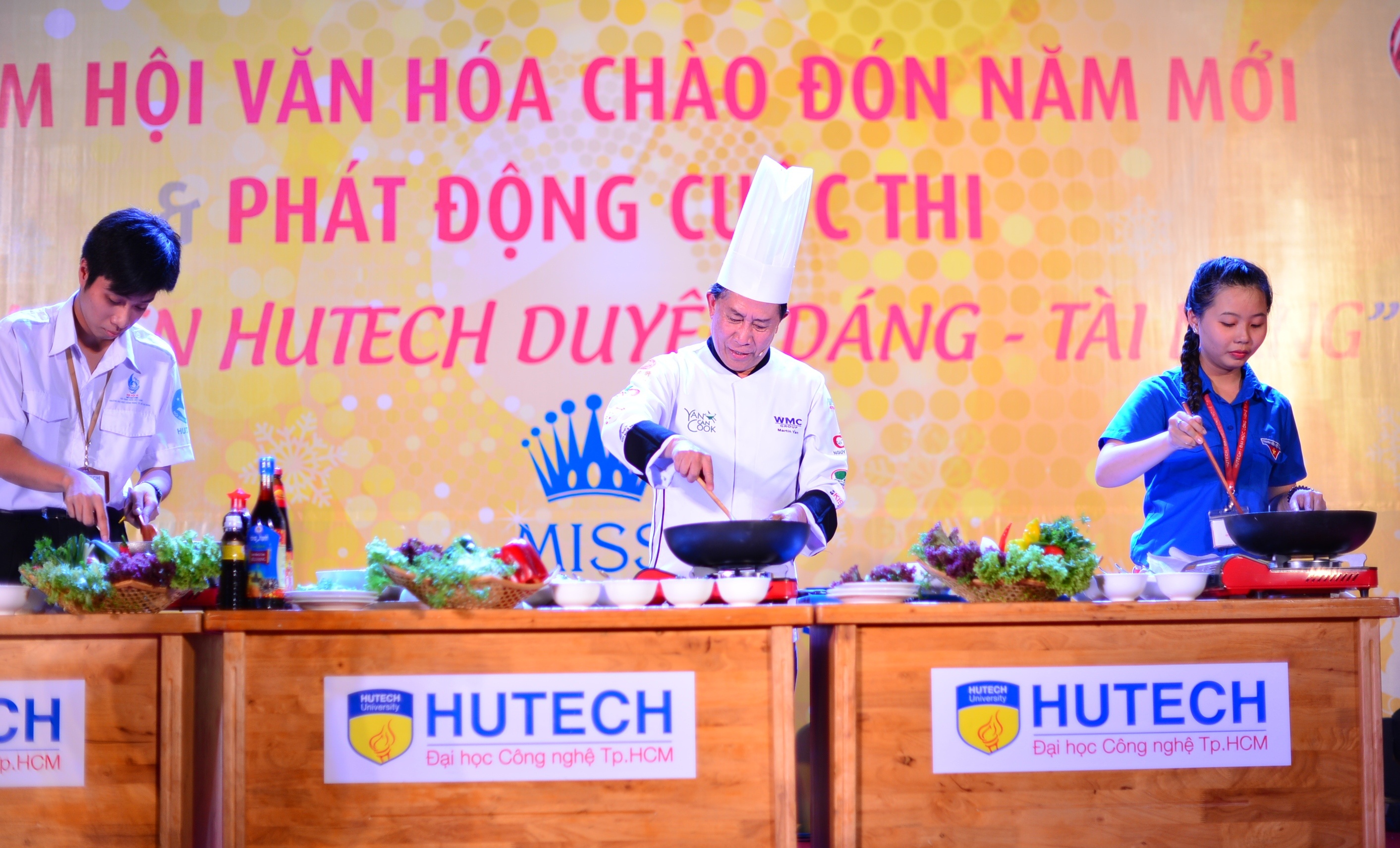 Chính thức diễn ra vào lúc 18h, đêm hội văn hóa HUTECH đã thực sự bùng cháy ngay từ nội dung đầu tiên: chương trình giao lưu văn hóa ẩm thực “Theo chân vua bếp Yan Can Cook (Martin Yan)”. Nếu trước đây cái tên Yan Can Cook từng làm rúng động hàng triệu trái tim của Việt Nam và châu Á qua chương trình dạy nấu ăn Yan Can Cook nổi tiếng khắp thế giới thì tại sự kiện này, cộng đồng HUTECH đã thực sự mãn nhãn trước những tuyệt chiêu làm bếp đặc biệt của Martin Yan.