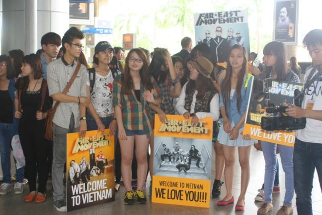 | Fan đón Far East Movement tại sân bay Tân Sơn Nhất (TP.HCM). |