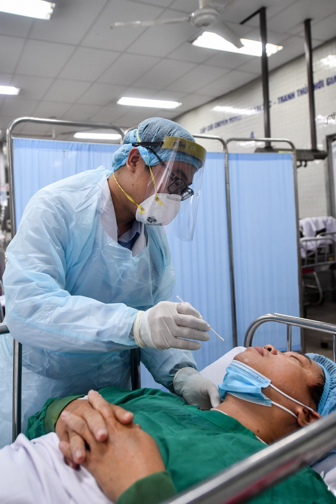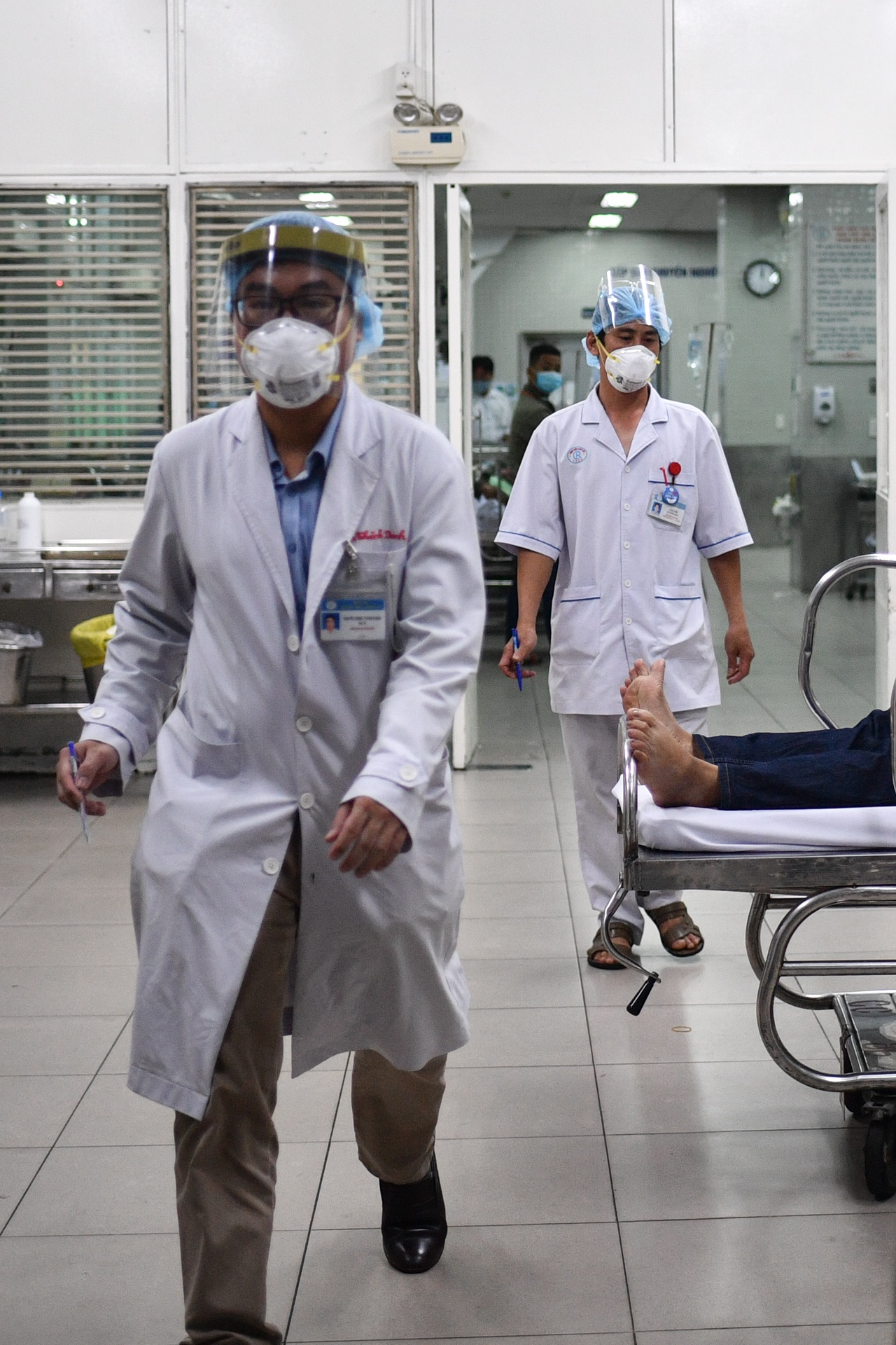 | Khi lượng bệnh nhân chờ phẫu thuật và chuyển khoa khoảng hơn 10 người, tôi thay đồ bảo hộ và lấy mẫu xét nghiệm tầm soát Covid-19. Tại khoa, tất cả bệnh nhân đều được lấy mẫu xét nghiệm. Hiện tại, do khoa Cấp cứu thiếu người hỗ trợ, tôi đảm nhiệm luôn công việc này. |