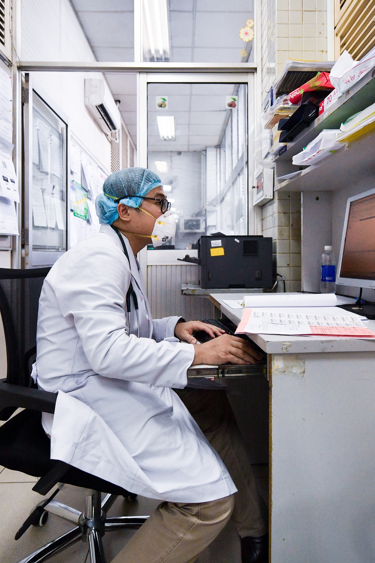 Tôi trầm tính, ít nói nên nhiều người có vẻ bất ngờ khi biết tôi công tác tại nơi đặc biệt này. Ca trực hôm nay của tôi bắt đầu từ 21h. Chúng tôi được bác sĩ trưởng tua Lê Phước Đại phân công vị trí cụ thể trong mỗi ca trực. Nhiệm vụ của tôi hôm nay là phụ trách khu vực sàng lọc người bệnh và hỗ trợ thân nhân khai báo y tế. Đầu ca trực, tôi được phân công hỗ trợ đồng nghiệp tại phòng Hồi sức cấp cứu. |