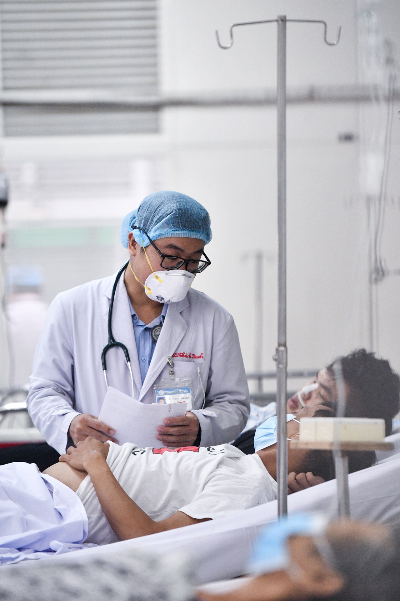 | Sau khoảng một giờ hỗ trợ phòng Hồi sức cấp cứu, tôi tiếp tục công việc tiếp nhận, sàng lọc bệnh nhân. |