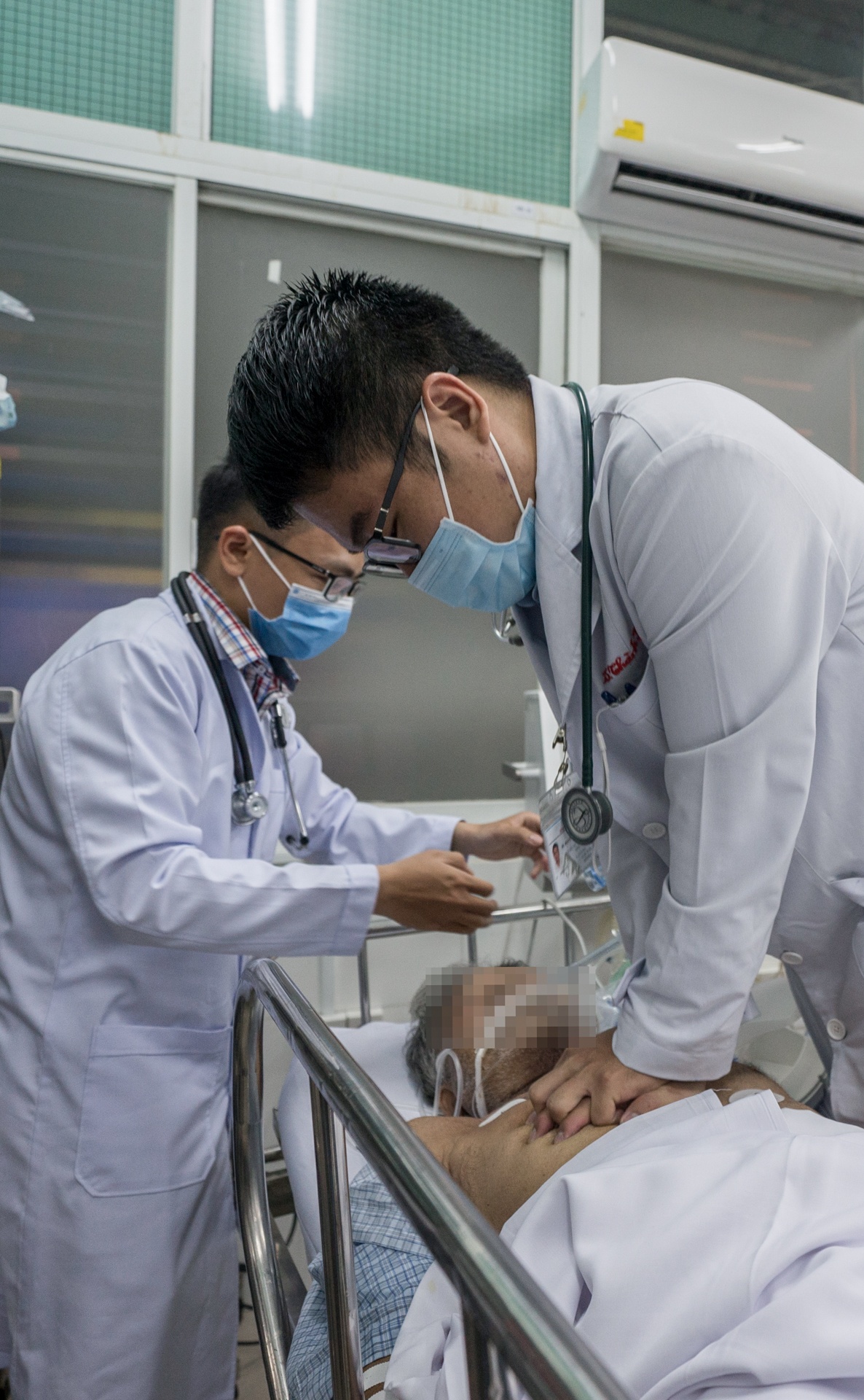 Trong lúc tôi nhập hồ sơ, điều dưỡng thông báo bệnh nhân ở giường cuối ngừng tim. Tôi cùng 2 bác sĩ, 3 điều dưỡng tập trung nhanh chóng đến giường của bệnh nhân. Tôi ép tim liên tục trong lúc các đồng nghiệp kiểm soát thông số monitor, bóp bóng, truyền adrenalin.