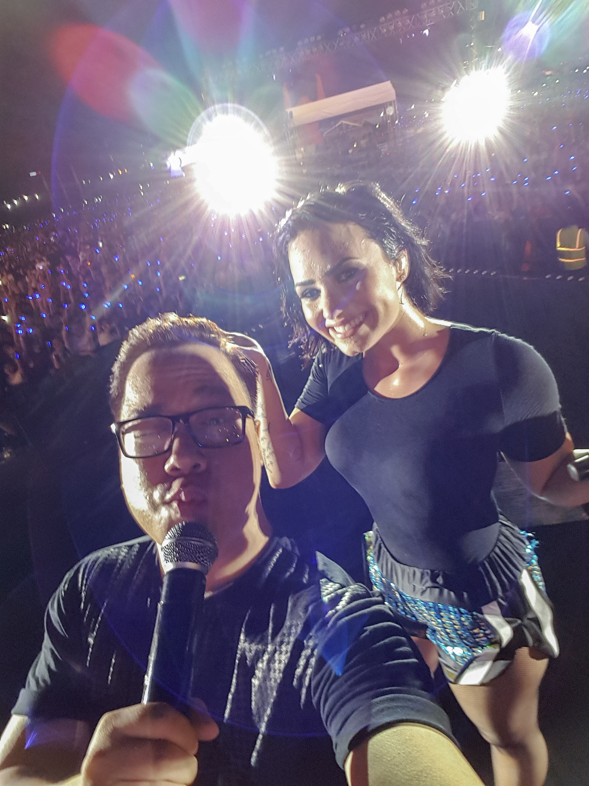 Demi Lovato hôn gió, chụp hình selfie trên sân khấu Sài Gòn