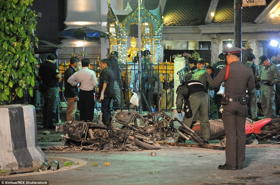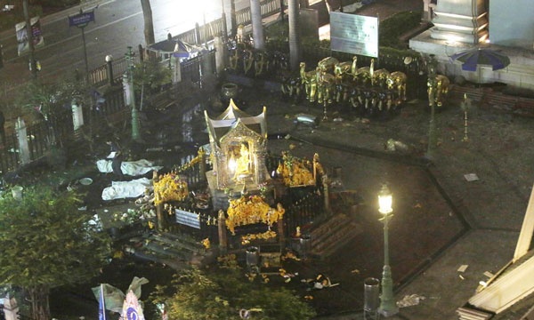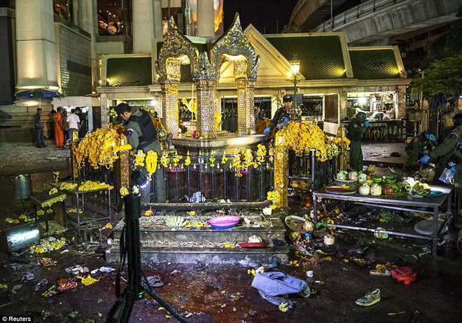 Đền Erawan ở trung tâm Bangkok vốn là nơi nhộn nhịp du khách và người dân tới tham quan, cầu nguyện. Vụ đánh bom tối 17/8 khiến công trình nổi tiếng tan hoang.