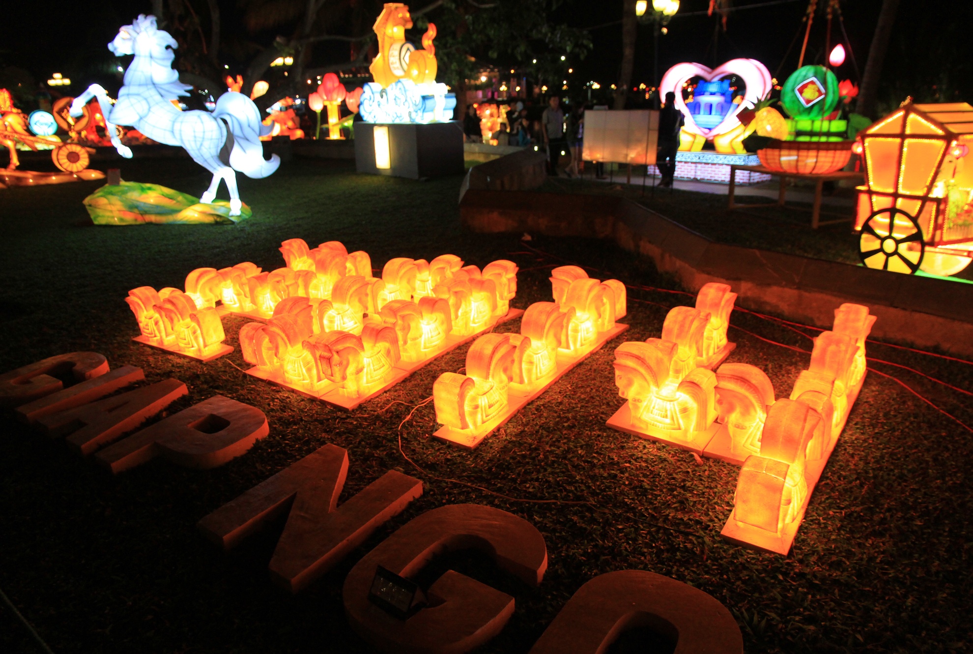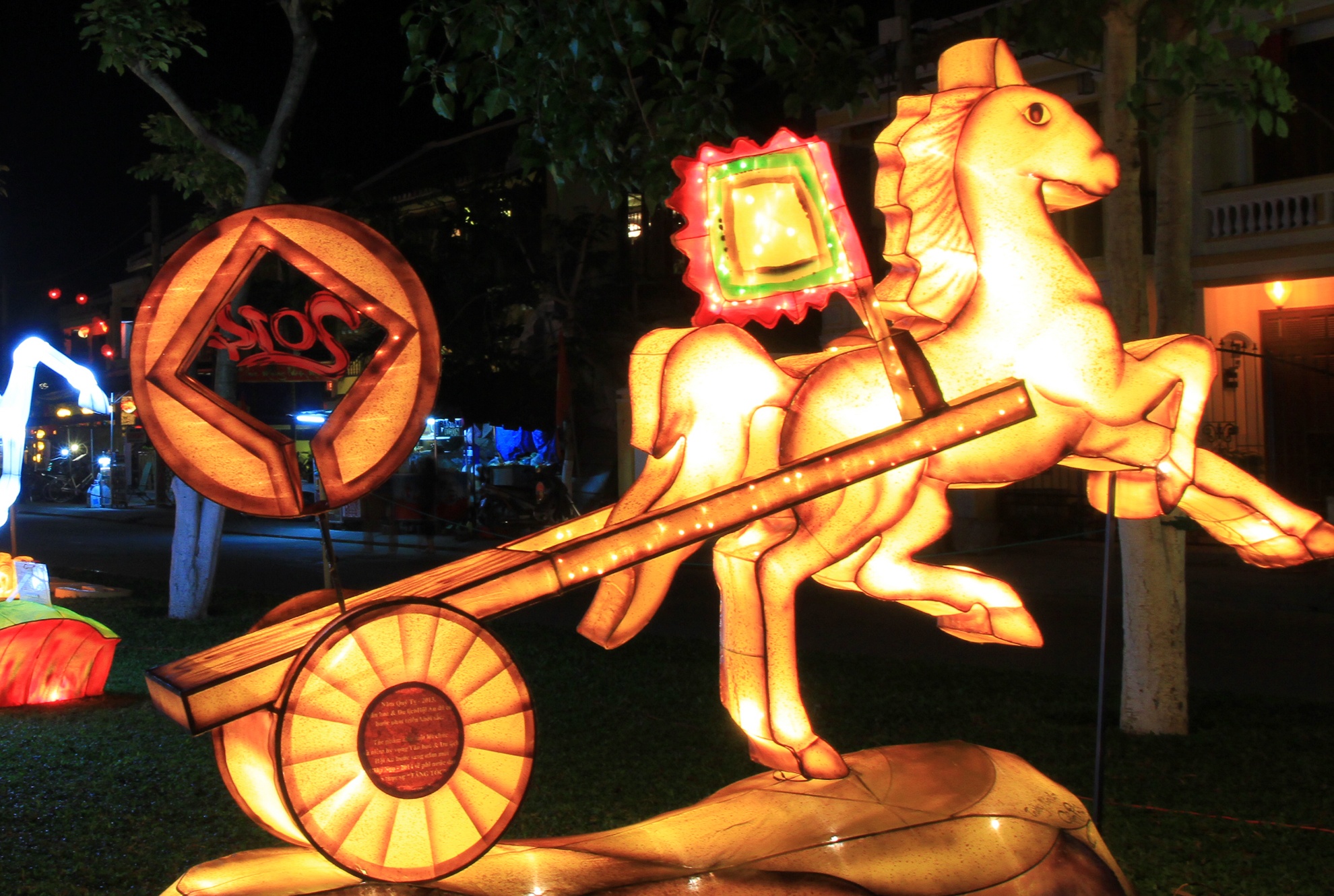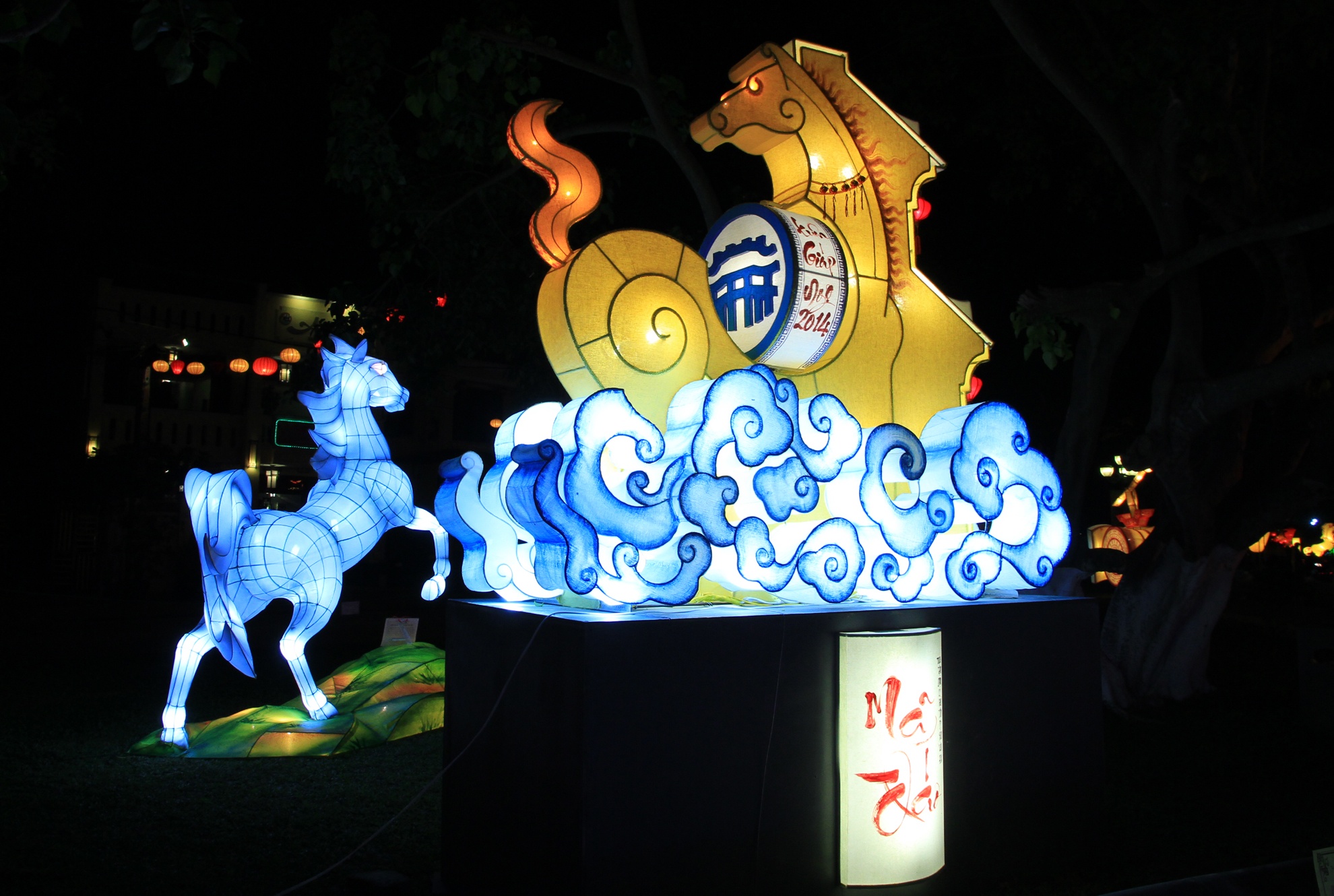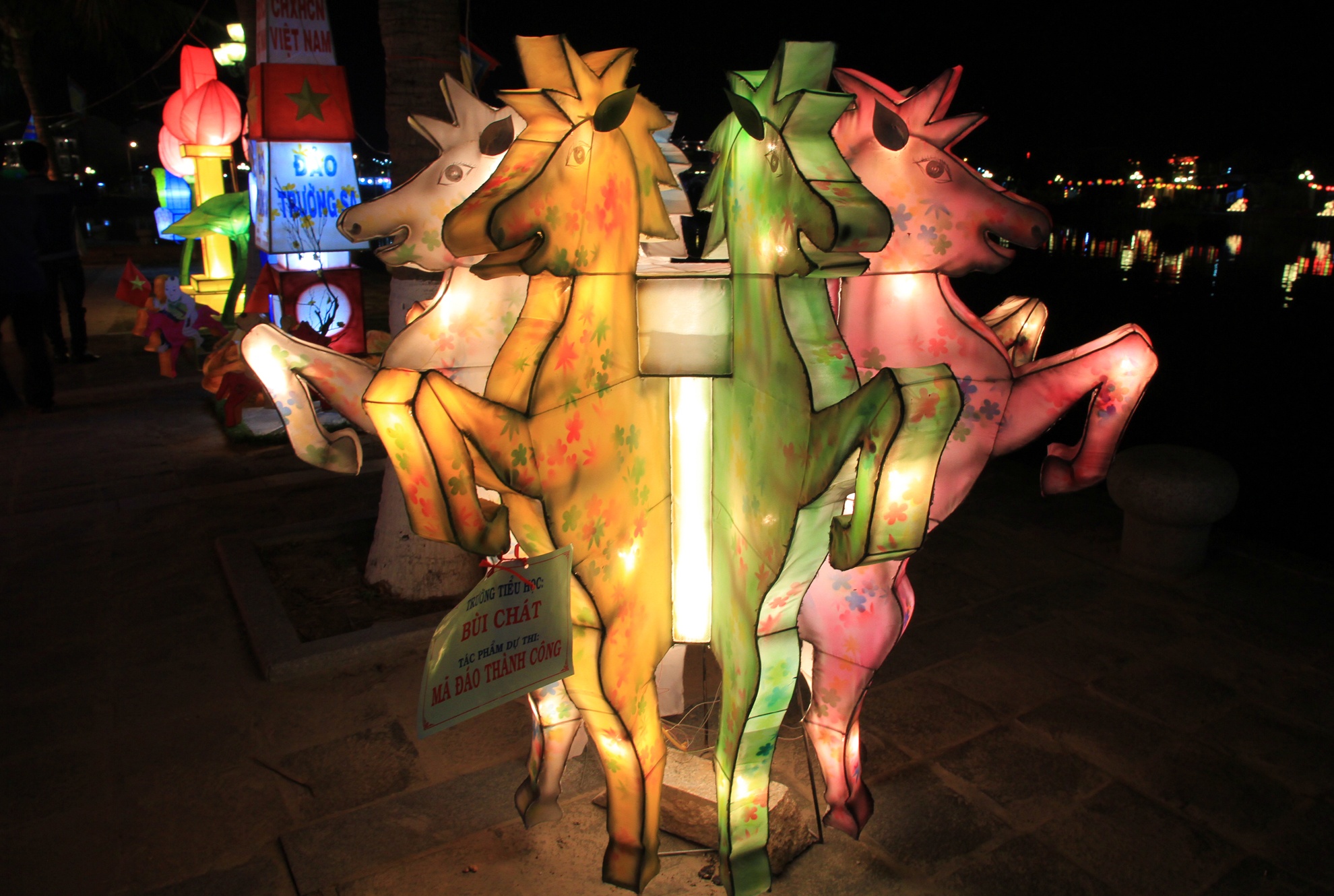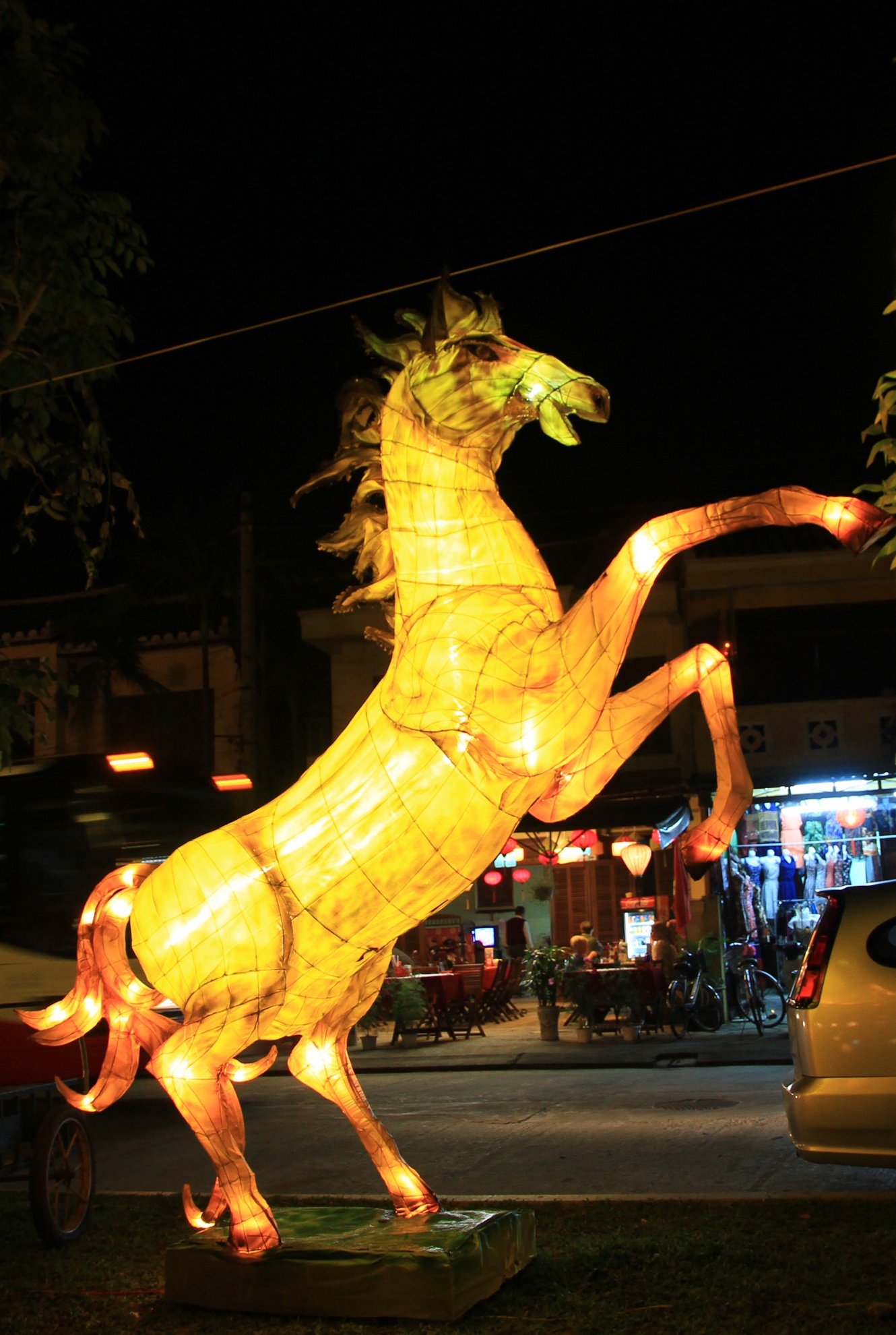 | Rất nhiều đèn lồng theo hình biểu trưng năm con ngựa dọc vườn tượng Hội An. |