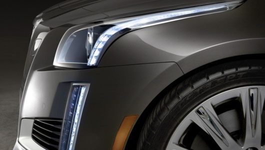 Khác với những chiếc đèn xe thẳng đứng truyền thống trước đây của Cadillac (thể hiện chữ ký của ngôn ngữ thiết kế khoa học và kỹ thuật), chiếc CTS có thêm một dải đèn DRL chạy dọc lên phía trước làm nổi bật cả một góc xe. |
