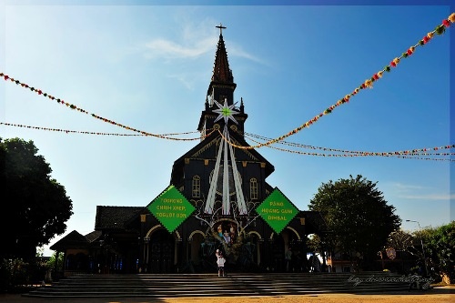 Nhà thờ Chánh tòa Kon Tum hay còn gọi nhà thờ Gỗ do một linh mục người Pháp khởi công xây dựng năm 1913. Công trình được xây theo phương pháp thủ công, kết hợp giữa phong cách Roman và kiểu nhà sàn của người Bana.