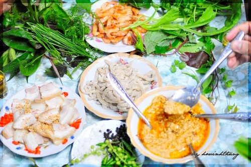 | Gỏi lá có hơn 30 loại rau, lá rừng. |