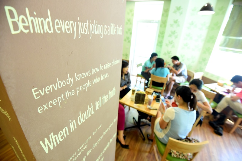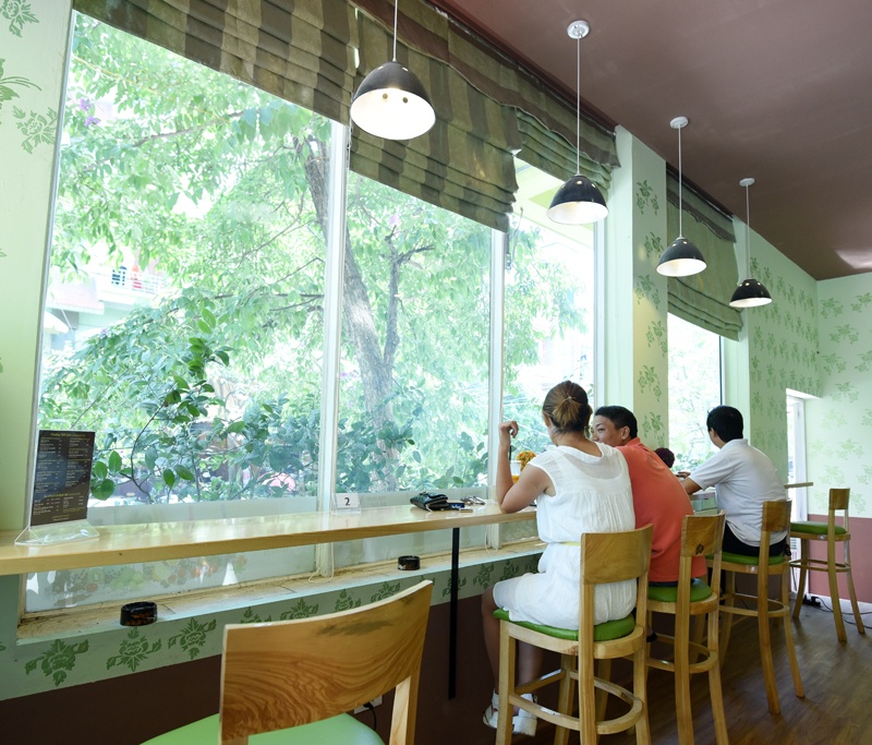 Không gian quán rộng chứ không hướng tới mô hình vỉa hè hay take away như nhiều nơi. Diện tích lớn với 3 tầng thoáng đãng, 2 mặt tiền nhìn ra phố với cây cối bao phủ khá đẹp, kết hợp thêm tông màu xanh lá chủ đạo, nên nơi này vẫn dễ lấy lòng khách. Trong dịp nắng đổ lửa này của Hà Nội, nhiều người đã coi đây là điểm trốn nóng lý tưởng.