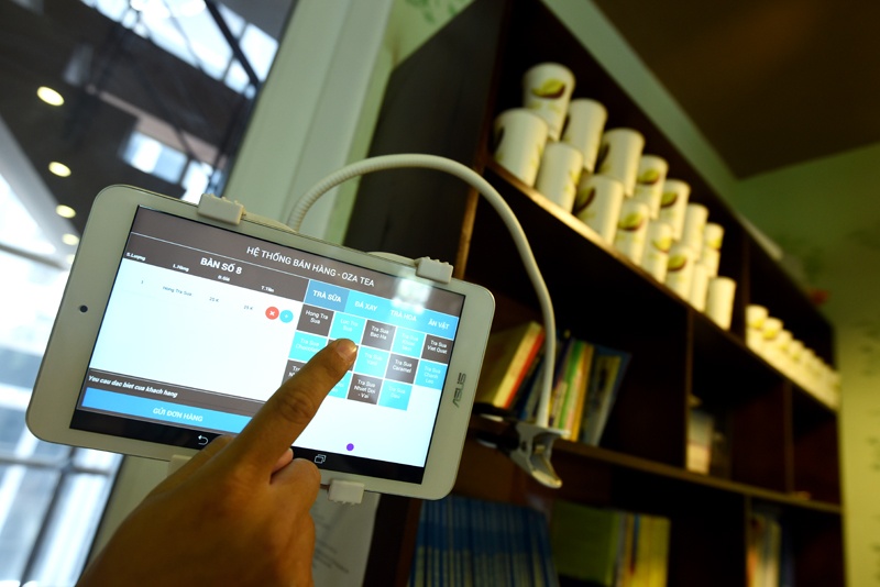 Nhân viên quán cũng sử dụng phần mềm gọi món chuyên nghiệp.