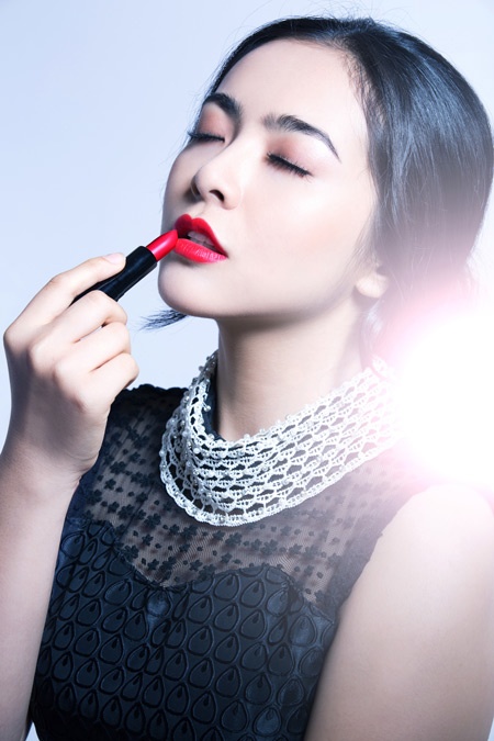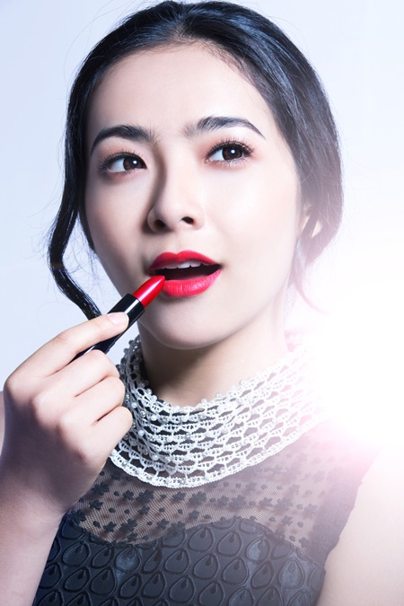 | Vẻ đẹp trong trẻo của diễn viên Phương Khánh sẽ không thể nổi bật được nếu thiếu đôi môi màu hồng và son bóng. |