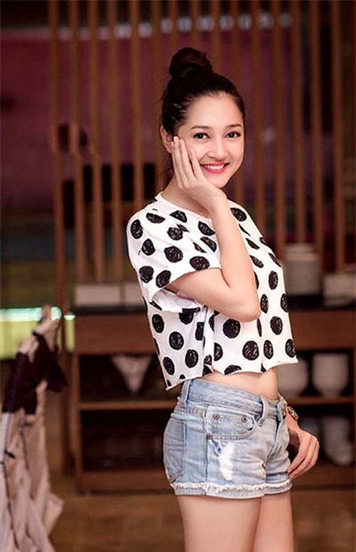 Bảo Anh gây bất ngờ với phong cách trẻ trung của áo crop top, quần short. |