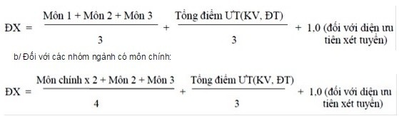 Điểm xét của thí sinh sẽ được tính theo công thức sau:
