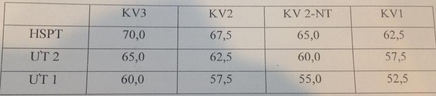 Khung điểm ưu tiên theo đối tượng và khu vực: