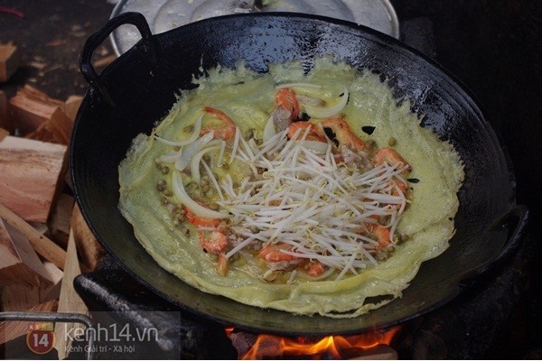 Nhưng đặc biệt nhất phải kể đến bánh cóng nhân pate siêu lạ, siêu ngon của quán. Bánh cóng thường cho cảm giác ăn hơi ngán vì bột và đậu xanh của bánh nhưng bánh cóng ở đây được làm khác hẳn những nơi thường bán món này. Bánh được pha chế khá cầu kỳ, đầu tiên là người đổ bánh phải cho vào một ít đậu và khoai trộn sẵn, sau đó sẽ cho một ít bột (đã pha). Chưa ngừng ở đó, họ cho thêm nhân pate vào khuôn bánh và lại cho hỗn hợp đậu khoai, bột… Cuối cùng là sắp lên mặt bánh vài ba con tôm tươi vẫn còn râu dài và cho vào lò chiên chín.