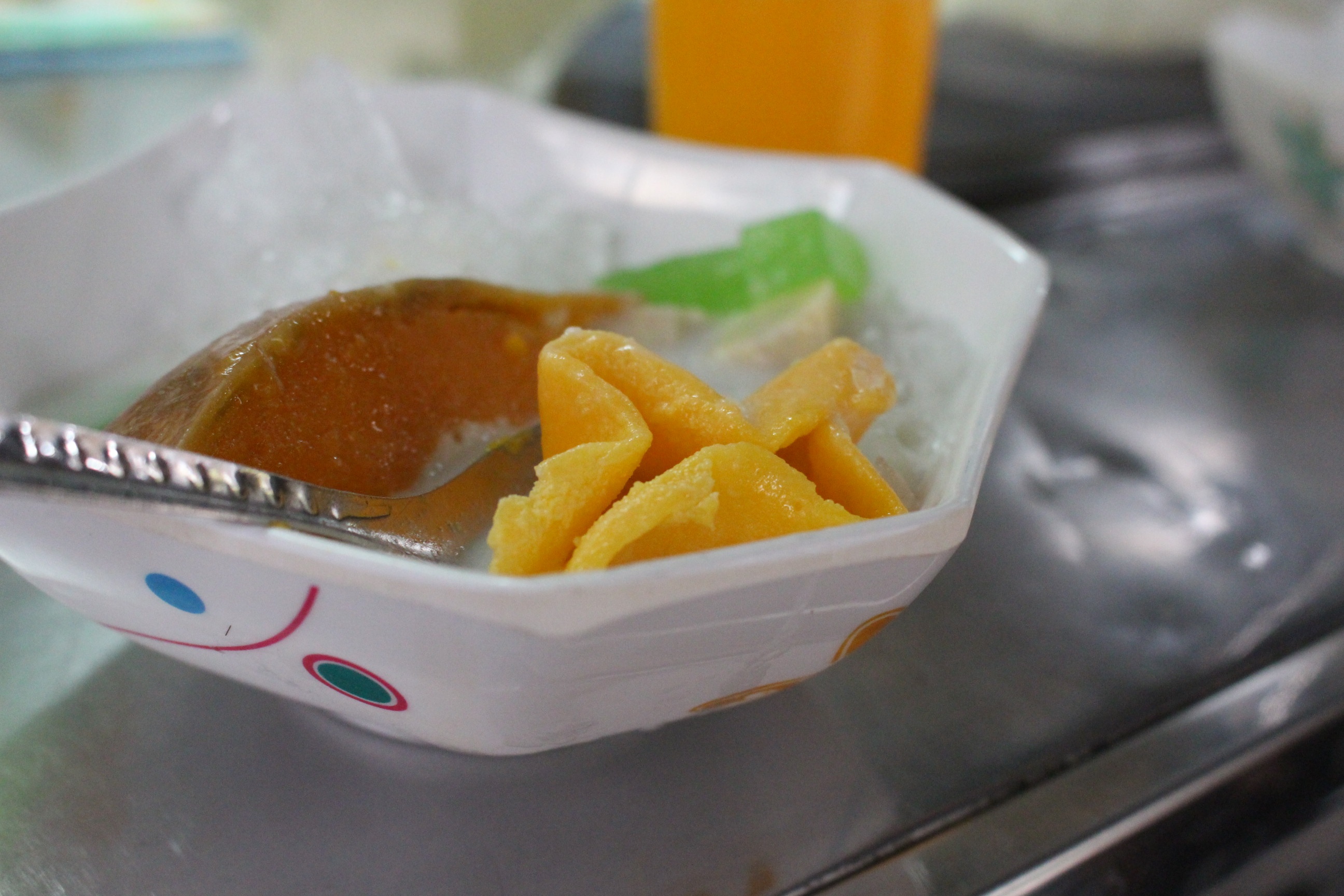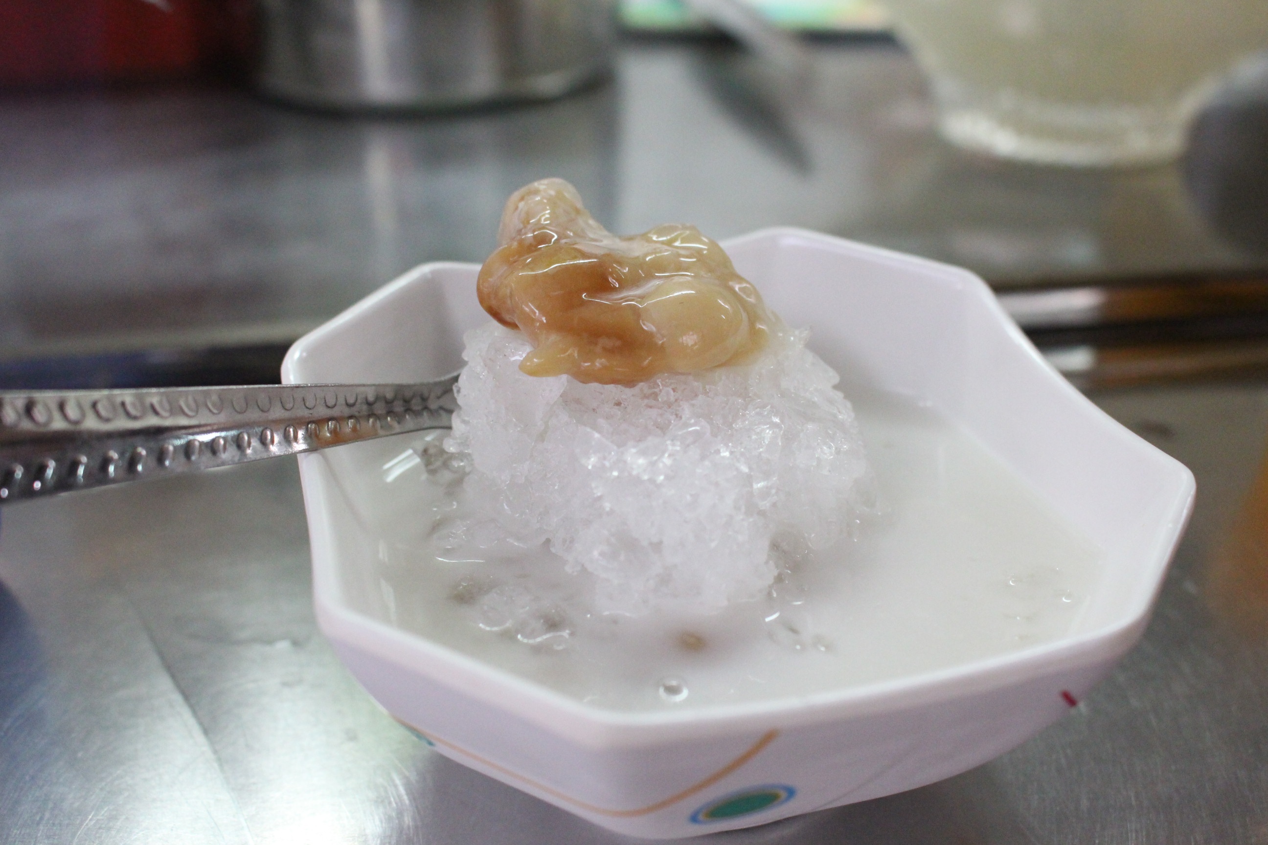 Có lẽ nhờ vậy mà hạt me mới có độ dẻo dẻo cùng sắc nâu nhẹ. Khi ăn, từng hạt me quyện với nước cốt dừa, đá bào mát lạnh, lạ miệng. |