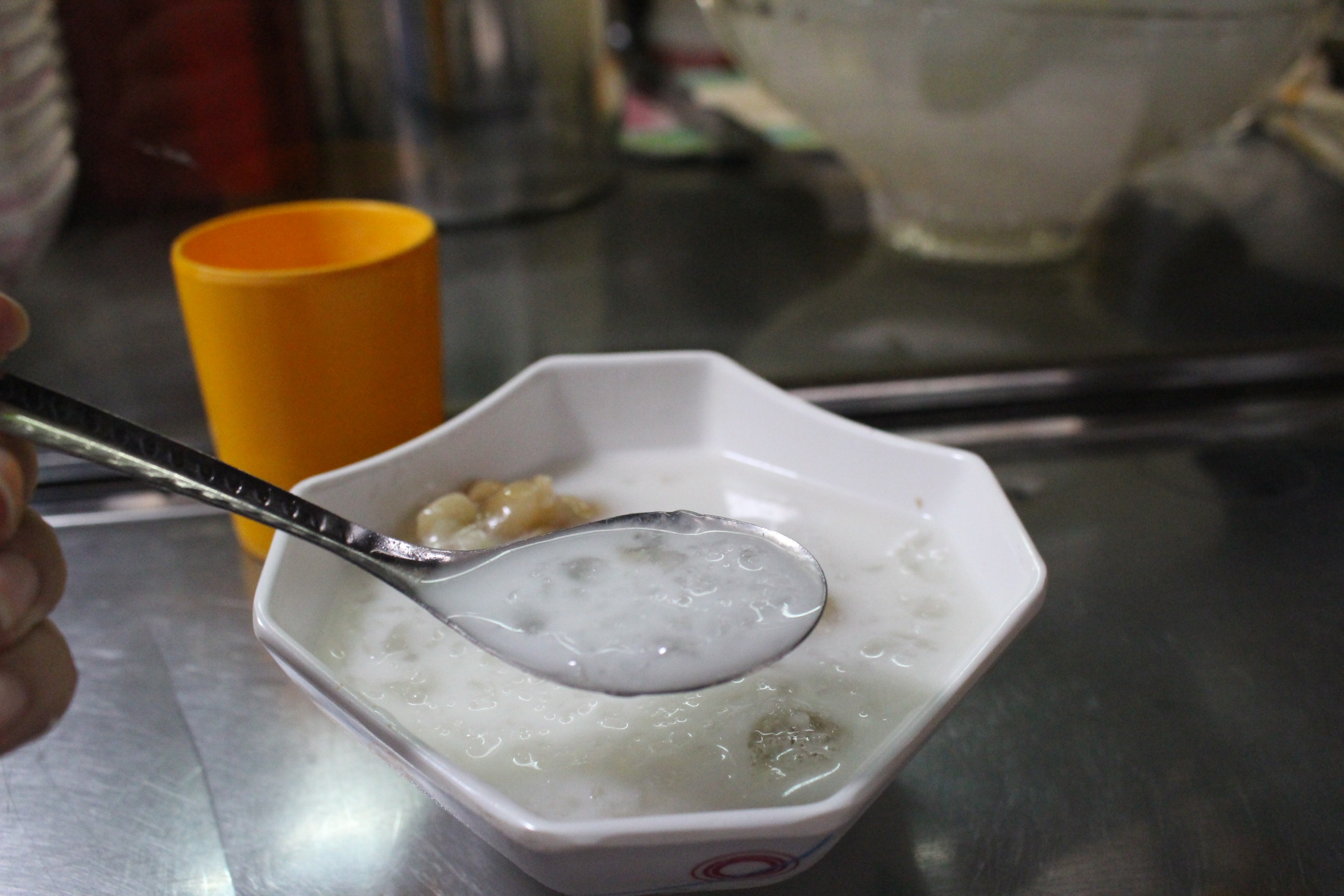 Hàng chè này có 7 loại chè là chè hột me, bí đỏ, thốt nốt... Điểm chung là nguyên liệu được nhập hàng tuần từ Campuchia, nấu bằng đường thốt nốt và đều được ăn cùng sầu riêng, nước cốt dừa, sữa đặc, đá bào.. |