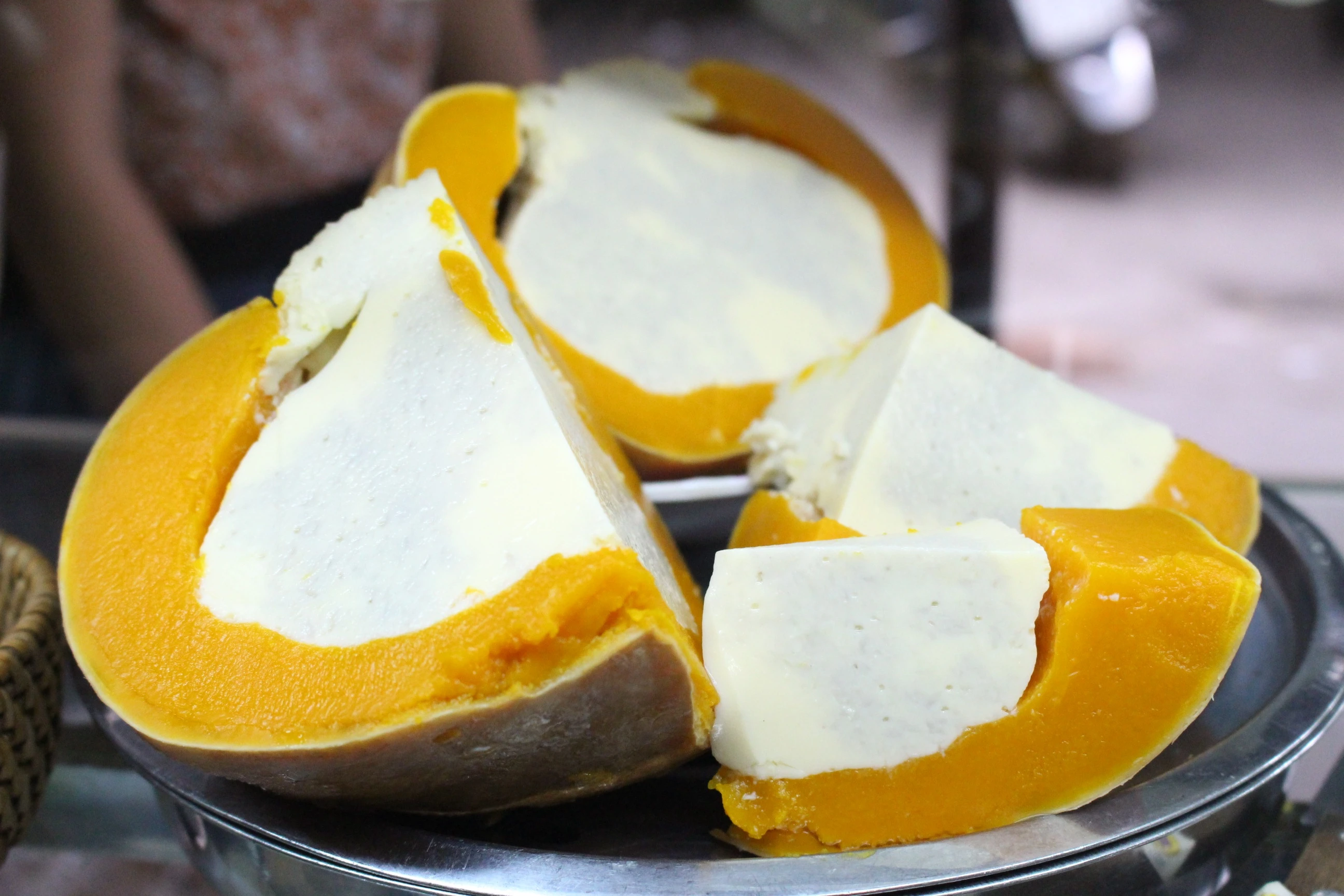 Trong các món chè, lạ nhất là chè bí chưng (tiếng Campuchia gọi là num-à-pơi). Trái bí đỏ được khoét ruột, thêm hỗn hợp gồm sữa bột, sữa đặc, nước cốt dừa, lòng đỏ trứng đã đánh đều, hấp cách thủy. |