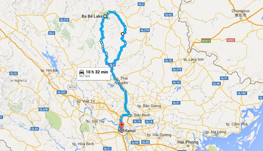Đường đi Ba Bể xuất phát từ Hà Nội. |
