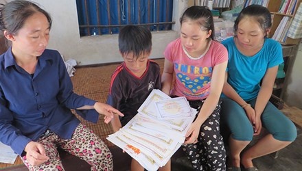 Bà Nguyễn Thị Sim (40 tuổi), xóm 1, xã Sơn Hải (Quỳnh Lưu - Nghệ An) kể: “Chồng tôi làm nghề chài lưới. Một ngày, ông ra đi mà không trở về, mình tôi với 4 đứa con thơ. Mẹ con tần tảo làm đủ nghề để kiếm cái ăn, nhà dù nghèo nhưng ơn trời, đứa nào cũng ham học và học giỏi”.