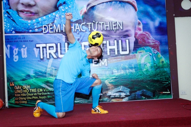Trong chương trình này, chàng trai người Tày đã biểu diễn nhiều động tác đẹp mặt với trái bóng tròn. |