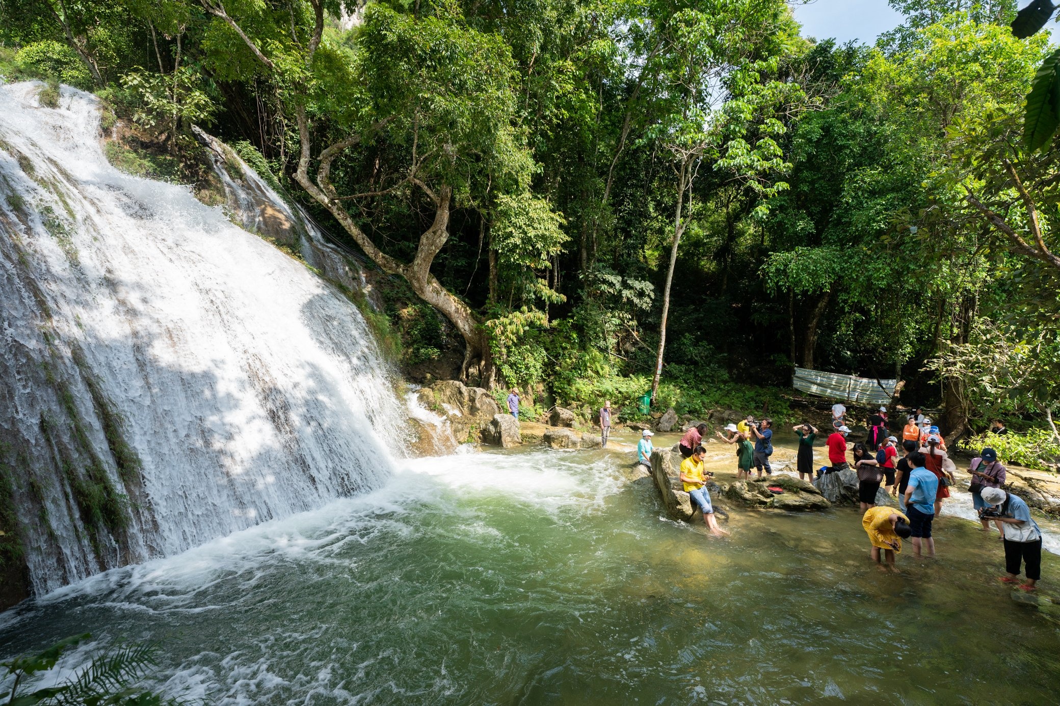 Từ bao đời nay, dòng sông Gâm đã trở thành cội nguồn văn hóa, gắn liền với mạch sống của cư dân dọc đôi bờ, chủ yếu là đồng bào Mông, Dao, Tày... Trên hành trình, chúng tôi được nghe điệu Then của cộng đồng người Tày, Nùng, nếm vị thức ngon Tuyên Quang, nguyên liệu cá, tôm đánh bắt từ sông, suối vùng này. Cuối chuyến đi, thác Khuổi Nhi, thuộc địa phận xã Thượng Lâm (Lâm Bình) đón chúng tôi với bầu không khí trong lành, những hàng cây cao che mát rượi lối đi. Thác có nhiều tầng, chảy dài 3 km từ trên đỉnh núi xuống lòng hồ. Tại đây, du khách được trải nghiệm câu cá, leo, tắm thác, cho cá rỉa chân, nấu nướng ven hồ, cắm trại, chèo thuyền kayak. Bạn đi một đoạn men theo đường mòn là tìm được đến đỉnh thác. Ở đây, nước dội mạnh từ cao xuống tung bọt trắng xóa. Mỗi năm, chị Nông Thị Huyền dành thời gian ghé thác Khuổi Nhi 2-3 lần. Từ Bến Thủy (thị trấn Na Hang), nữ du khách thuê chiếc thuyền lớn giá 1,5 triệu đồng cùng bạn bè đến thác vui chơi. "Không khí ở đây trong lành, bình yên đúng sở thích của tôi. Tôi vui vì sau thời gian dịch bệnh làm gián đoạn du lịch, lượng khách đến thác đã có xu hướng tăng lên", chị Huyền nói.