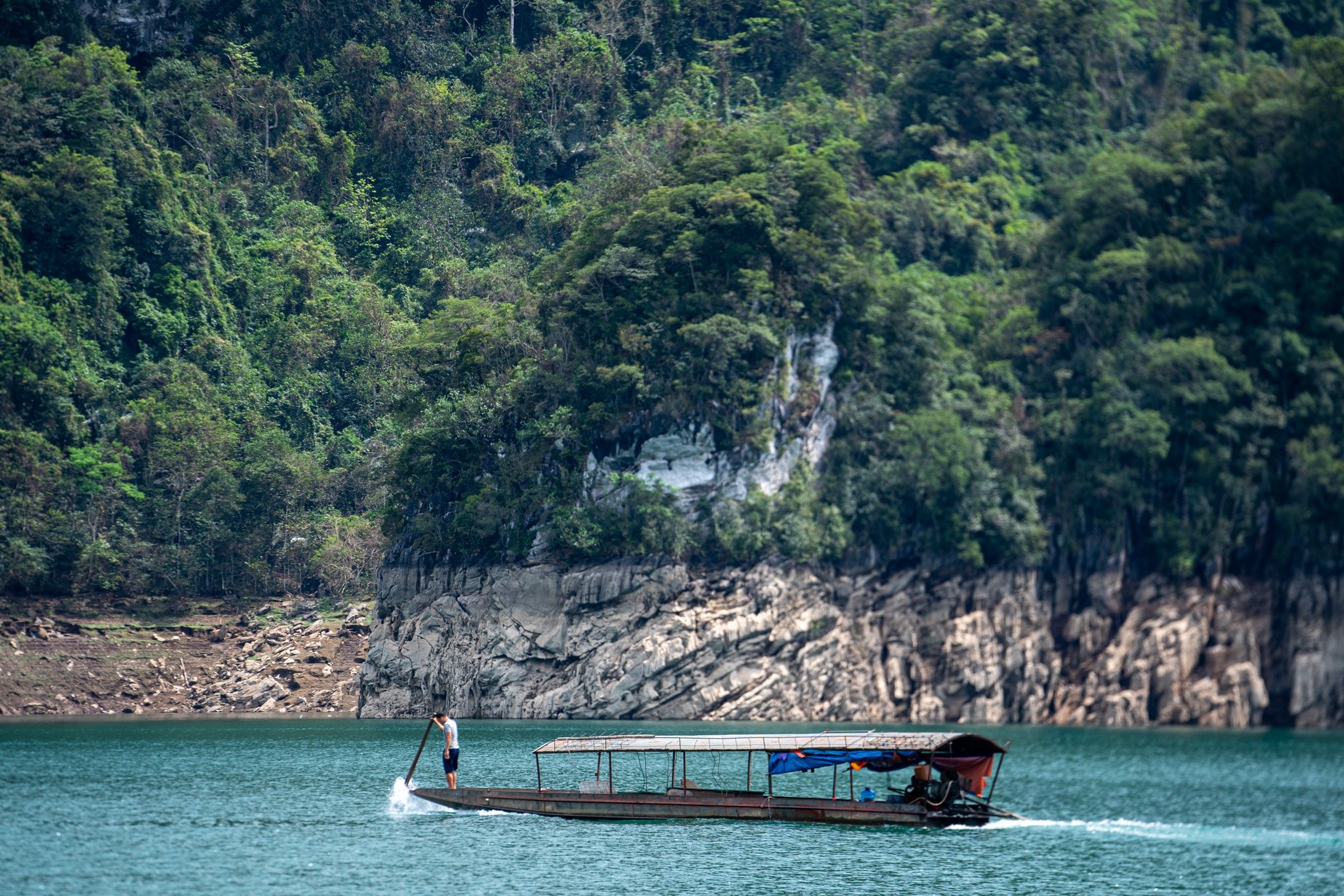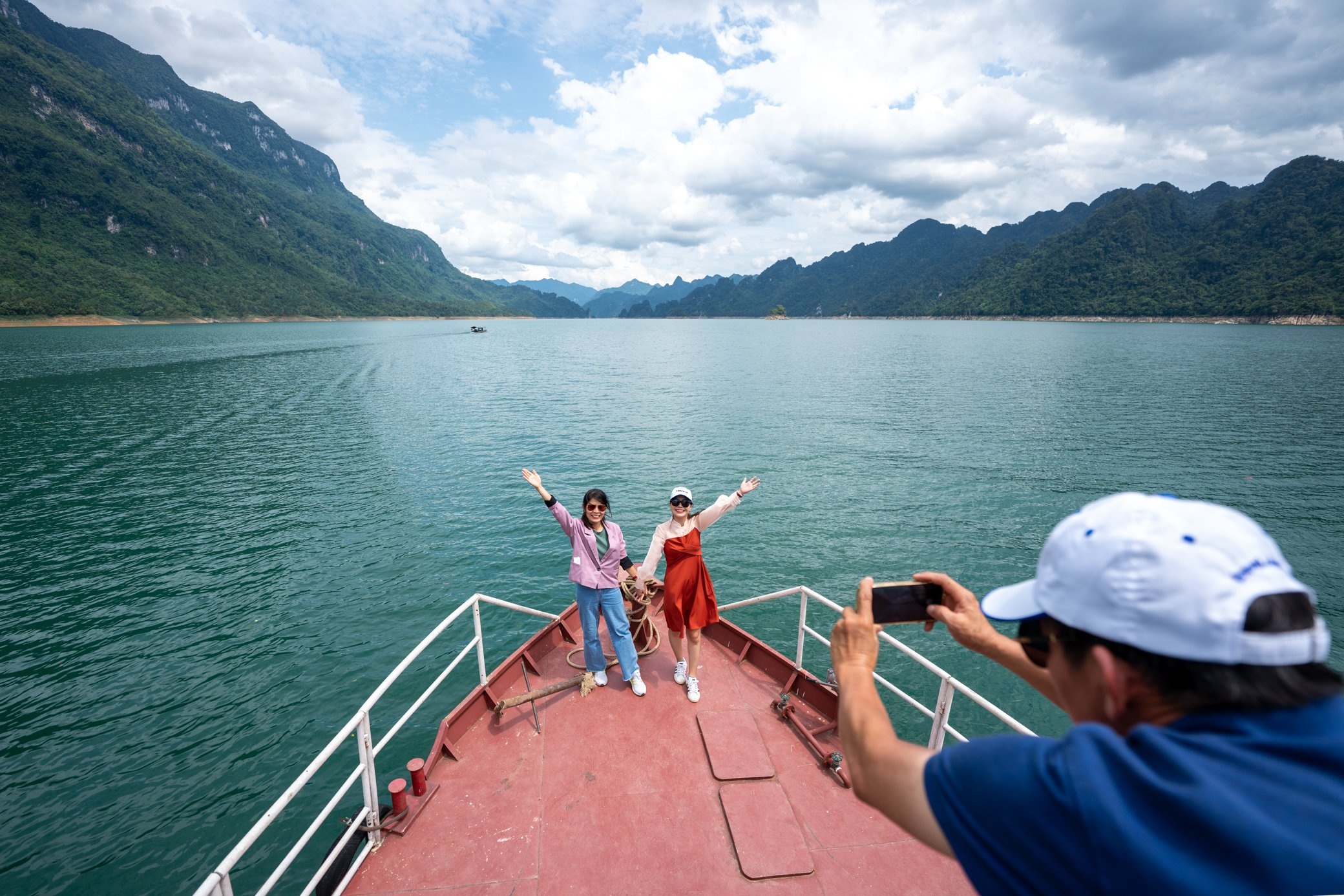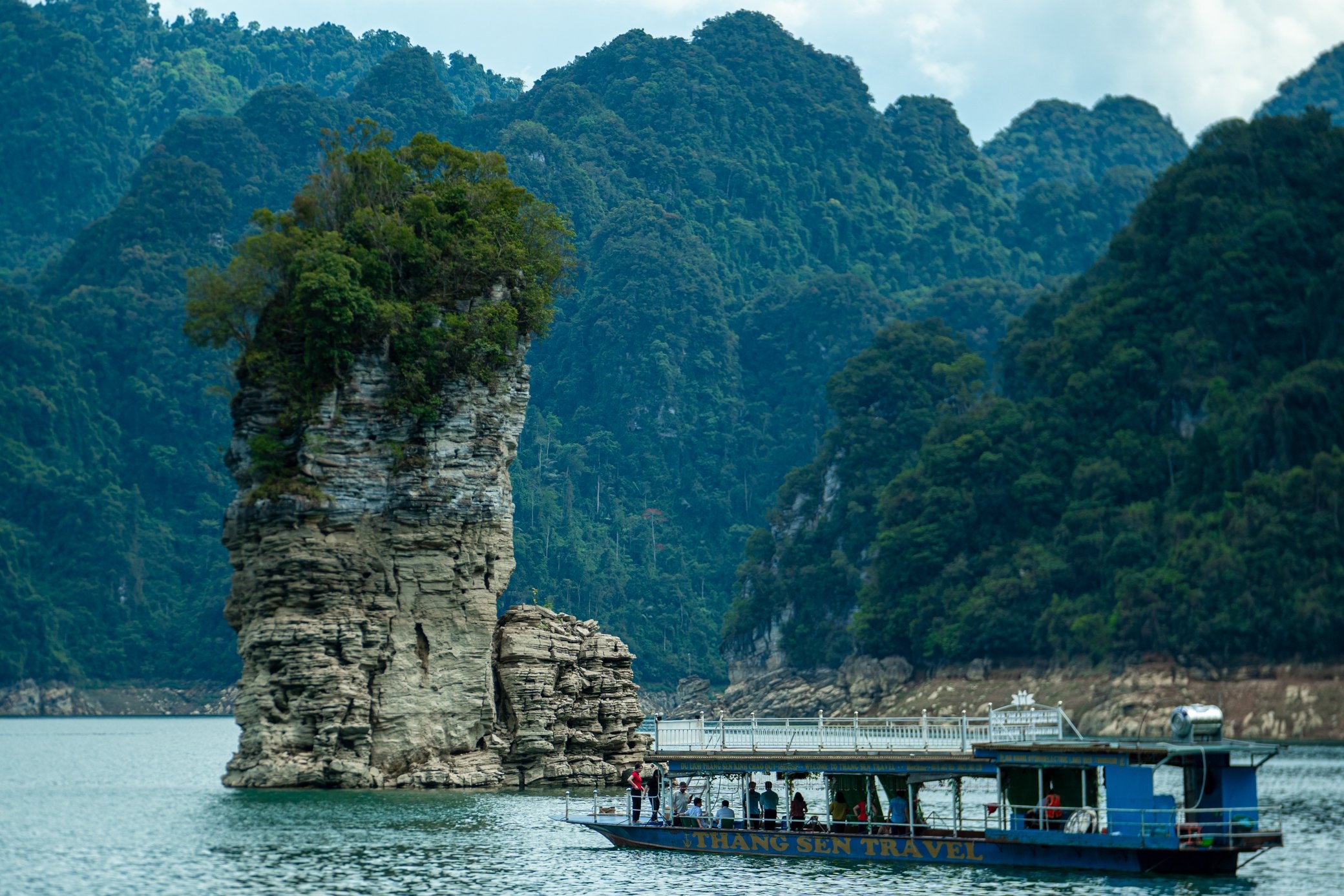Qua đoạn đường đèo quanh co uốn lượn trên sườn núi chênh vênh, tôi đến bến thuyền thuộc huyện Bắc Mê (Hà Giang), bắt đầu hành trình xuôi dòng sông Gâm đến bến Bình Lâm (Tuyên Quang). Chiếc thuyền lớn đưa chúng tôi đi dọc chiều dài khoảng 70 km đường sông gần như yên ả, tĩnh lặng trong 6 tiếng đồng hồ. Từ năm 2005, sau khi cửa đập công trình thủy điện Tuyên Quang (thuộc địa phận thị trấn Na Hang) đóng lại, khu vực lòng hồ rộng 8.000 ha với cảnh quan độc đáo xuất hiện, thu hút du khách mọi miền ghé tham quan. Đến nay, điểm đến vẫn còn vẹn nguyên một vẻ hoang sơ của miền sơn cước. Vẻ đẹp hồ nước biến hóa theo mùa. Từ tháng 9 đến tháng 2 năm sau, mực nước cao, có thể chạm vạch trên cùng (khoảng 120 m so với mực nước biển), mặt hồ trải rộng mênh mông, cây cối bao phủ xanh rì. Mùa nước thấp (tháng 2-9), lòng hồ cạn để trơ ra những cù lao, hang hốc đá vôi hình thù kỳ dị. Theo chị Đinh Trà My, cán bộ Ban quản lý các khu du lịch Tuyên Quang, 99 ngọn núi quần tụ lại với nhau được nhắc nhớ như "vịnh Hạ Long giữa đại ngàn" và Vài Phạ, cột đá sừng sững cao gần 100 m tính từ đáy sông (cọc cột trâu trời theo tiếng Tày), là khu vực đẹp, ấn tượng nhất. Ngoài ra, xung quanh hồ còn nhiều cảnh, thiên nhiên kỳ thú, có thể kể đến những ngọn thác nổi tiếng như Khuổi Súng, Khuổi Nhi, Nậm Mê...