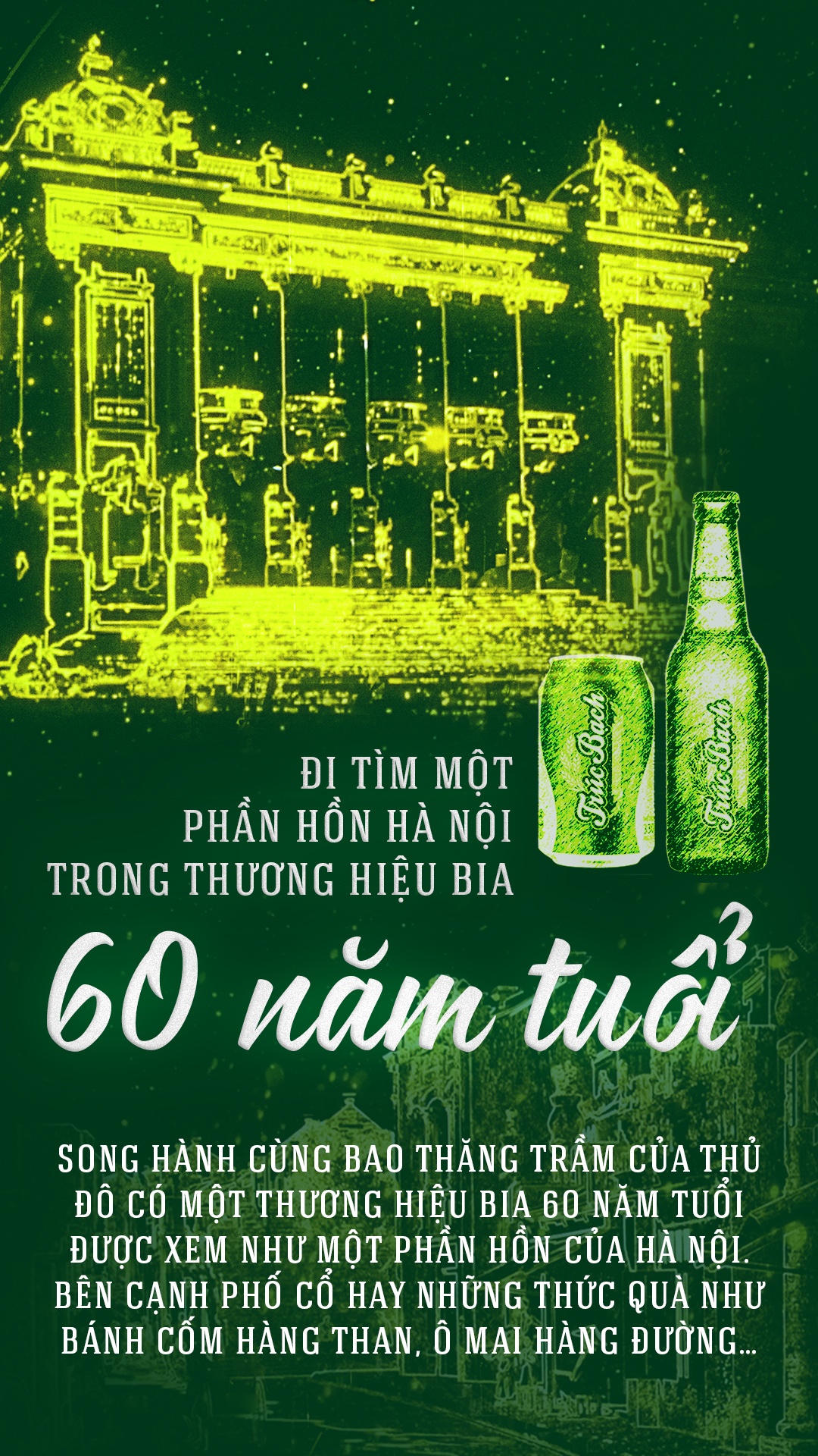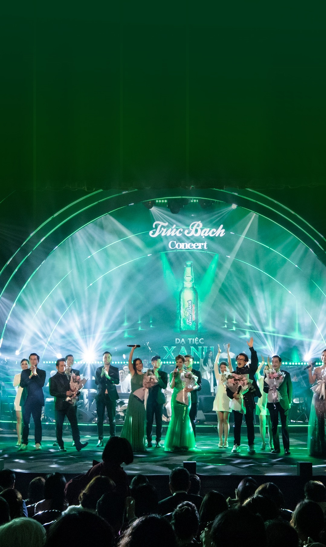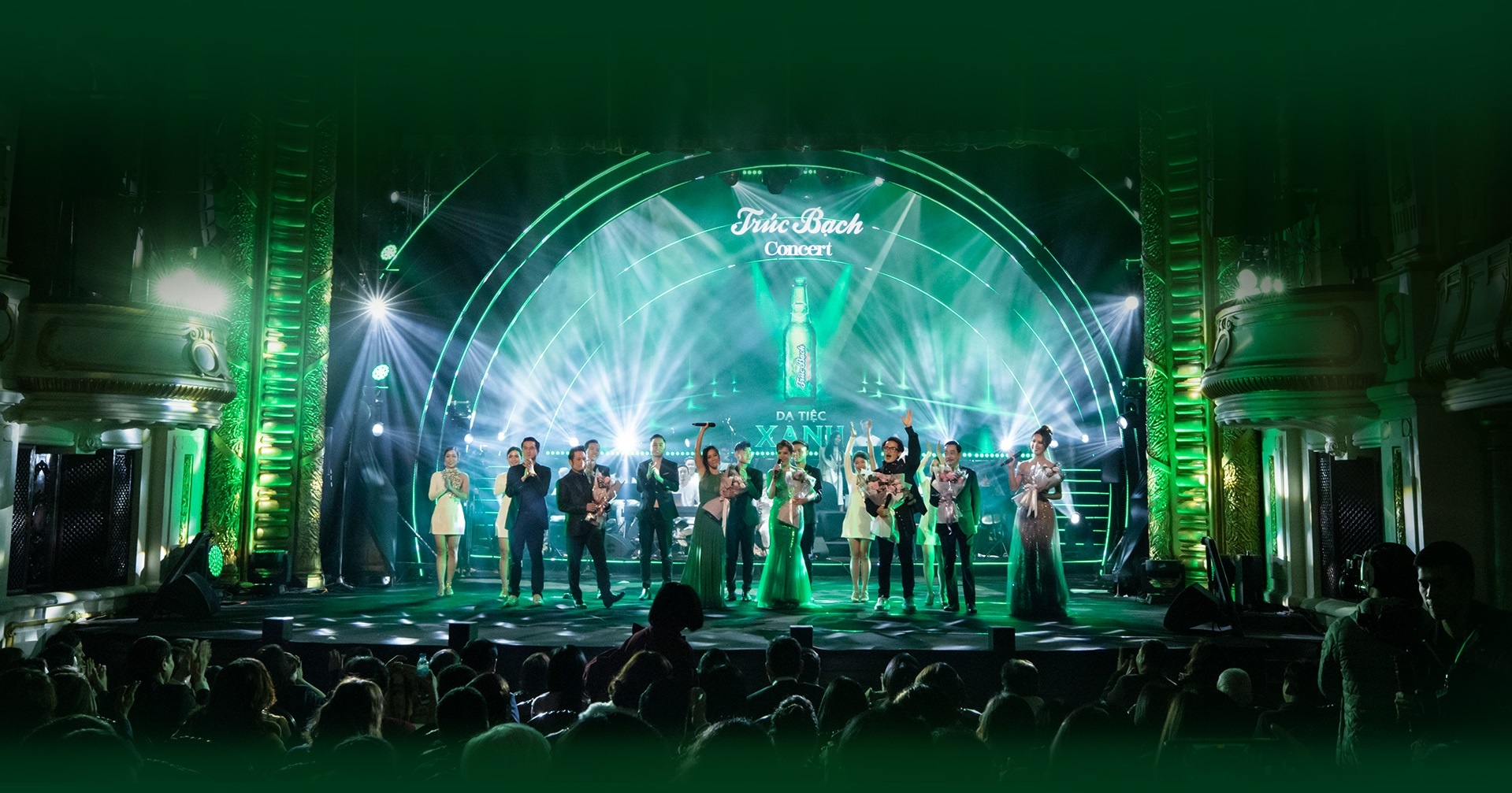 “Trúc Bạch Concert - Dạ tiệc xanh” diễn ra vào ngày 8/12, tại Nhà hát Lớn Hà Nội với toàn bộ không gian được phủ xanh cùng hiệu ứng ánh sáng huyền diệu. Sự kết hợp giữa âm nhạc, ánh sáng và men bia nồng say mang đến cho khán giả một trải nghiệm nghệ thuật đầy mới lạ.
