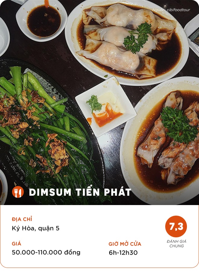 Ẩm thực Trung Hoa đang dần trở nên quen thuộc với người Sài thành. Thực khách có nhiều sự lựa chọn món Hoa ở bất cứ thời điểm nào trong ngày. Cháo sá sùng Tư Ký, dimsum Tiến Phát hay Thiệu Ký mì gia là những địa điểm ẩm thực lâu đời luôn được thực khách đánh giá cao nhờ hương vị thơm ngon.